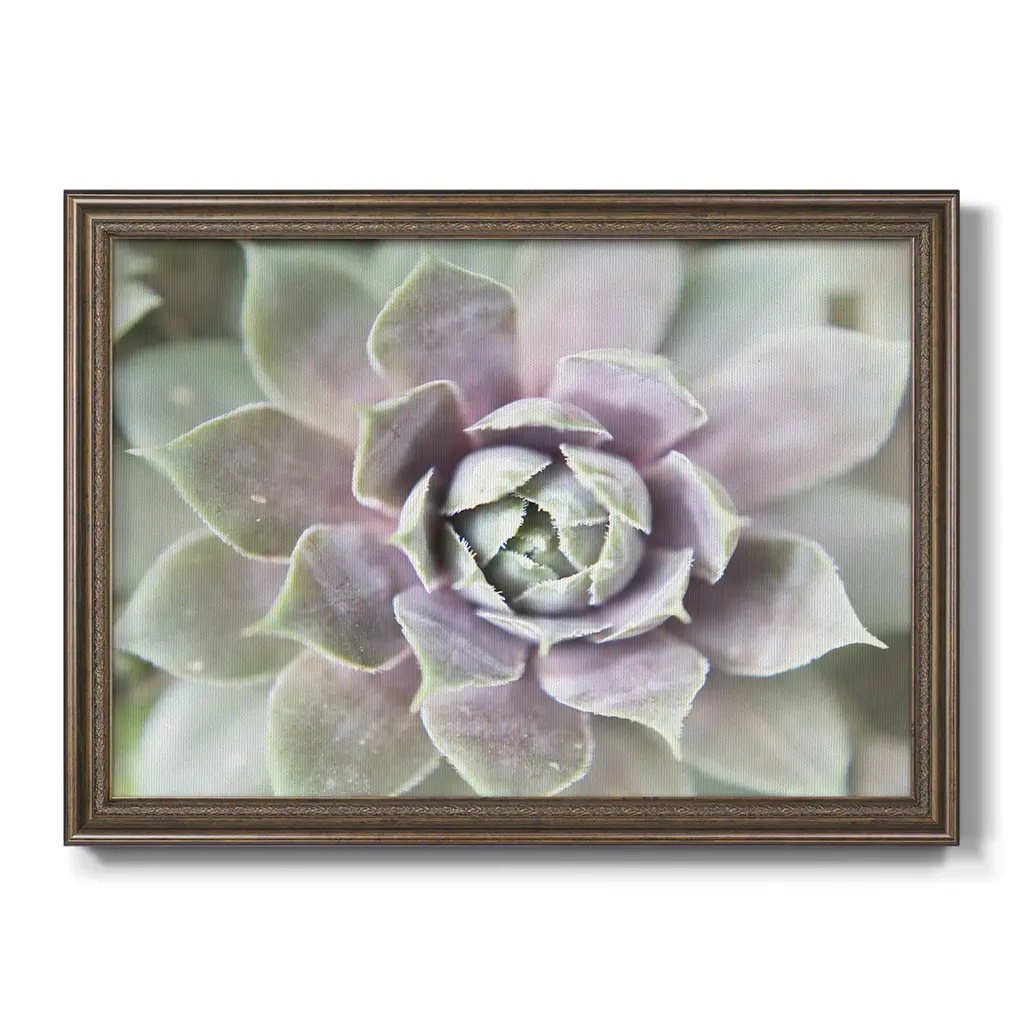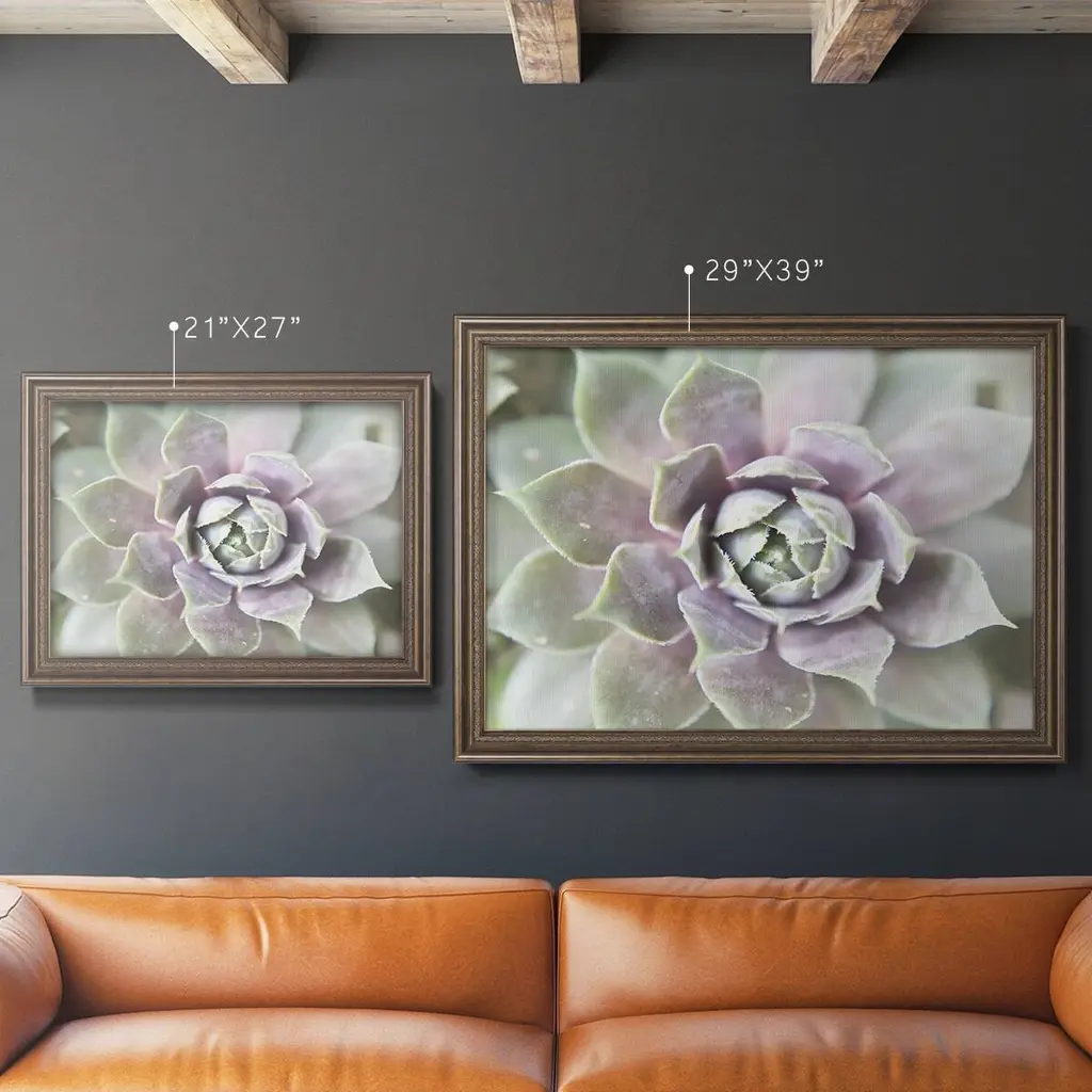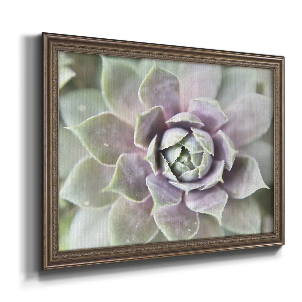 Succulent Glow II Premium Framed Canvas- Ready to Hang A Premium Framed Canvas created to last. Framed in distressed wood and available in an array of sizes and colors Featuring a beveled a solid wood stretcher bar, each piece comes ready to hand 3 SIZES AVAILABLE 16''X20'' - Overall Size 18'X27'' - Overall Size 24''x36'' - Overall Size Each piece is made to order. Each piece comes with hanging hardware. Made in the USA Ready to Hang Giclee Paper Print Acrylic Glass Beveled Matt Board