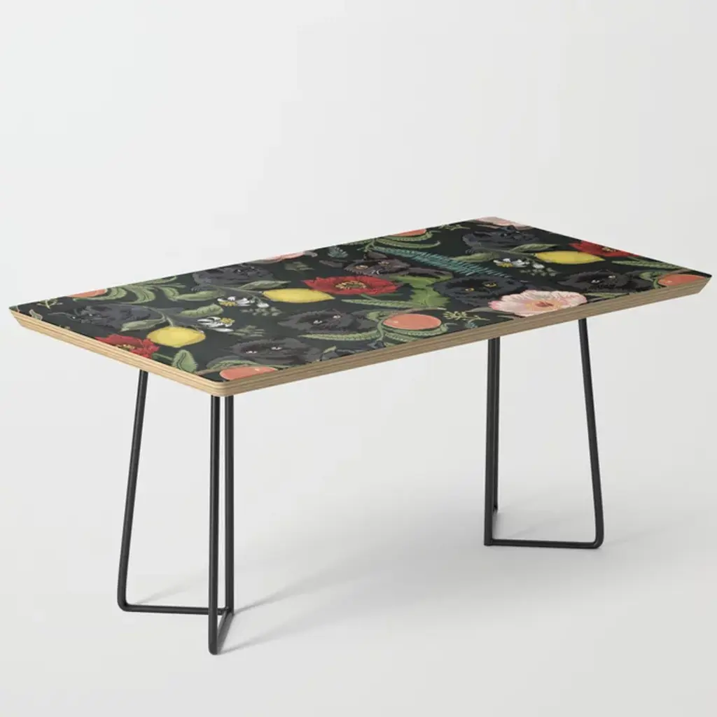 35.75" x 17.75" x 17" (H)Baltic birch table top with beveled edgeHigh quality print with satin finishSteel legs available in black or goldAssembly requiredEvery order is made just for youSHIPPING: Items are made to order and typically ship within 3-4 business days. Click here for more information about delivery options.Furniture sales are final. Click here for more information on returns.