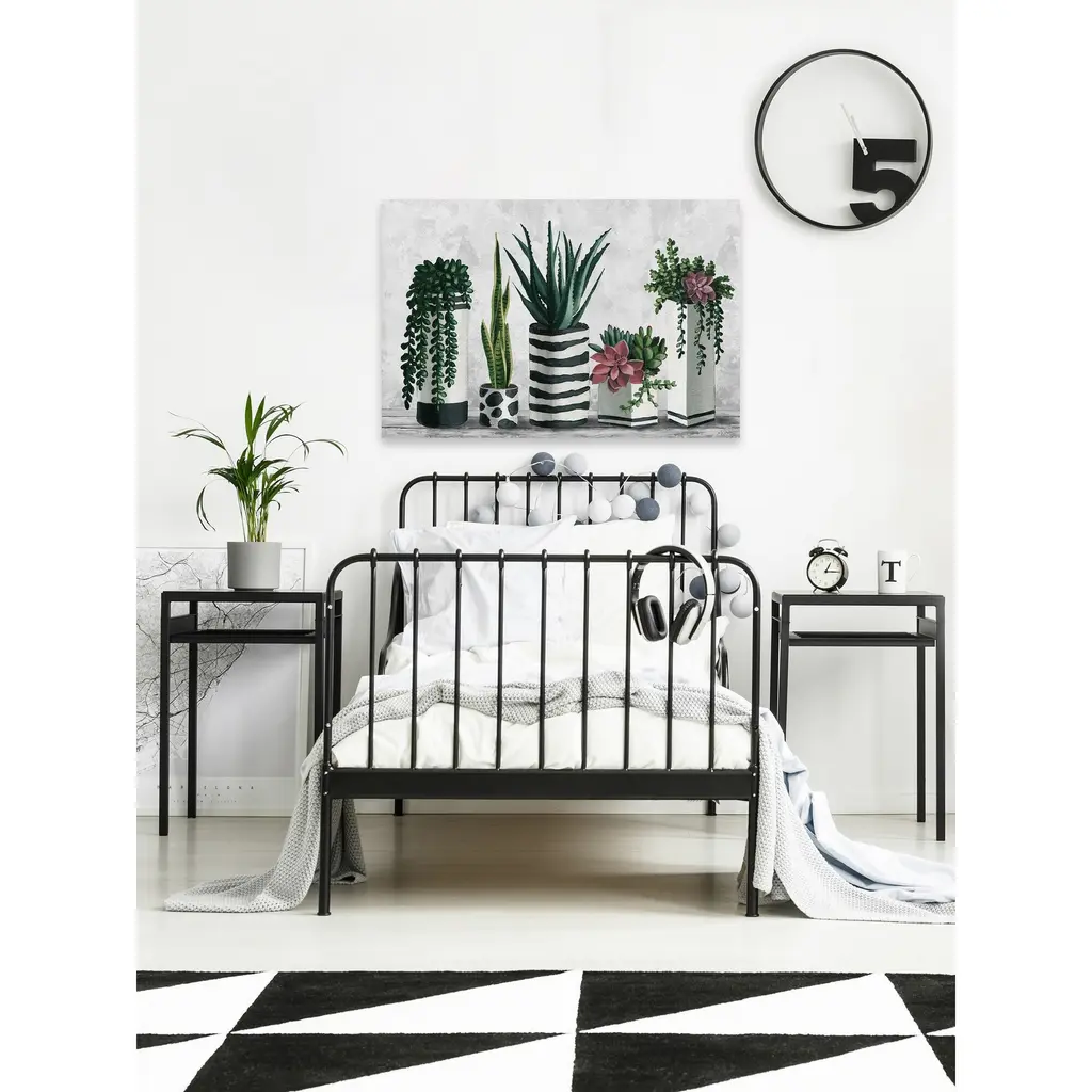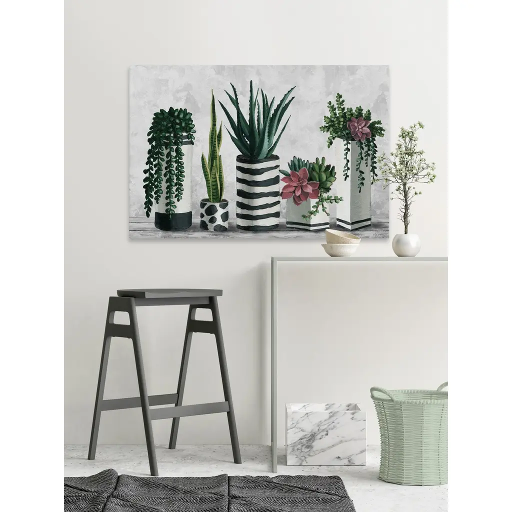 Chic and sophisticated, this painting print will instantly elevate any environment. In this, black and white colored potted succulents come together to reflect a sense of serenity. Proudly made in the USA, this piece is printed on canvas before it's stretched over non-warping wooden bars for a gallery-wrapped look. With wall-mounting hooks included, this artful accent is ready to hang up as soon as it reaches your front door. • Fine art canvas print from the Marmont Hill Art Collective • Professionally hand stretched • Gallery wrapped in sustainable, non-warping wood • Arrives ready to hang • Made in the USA • Includes a certificate of authenticity