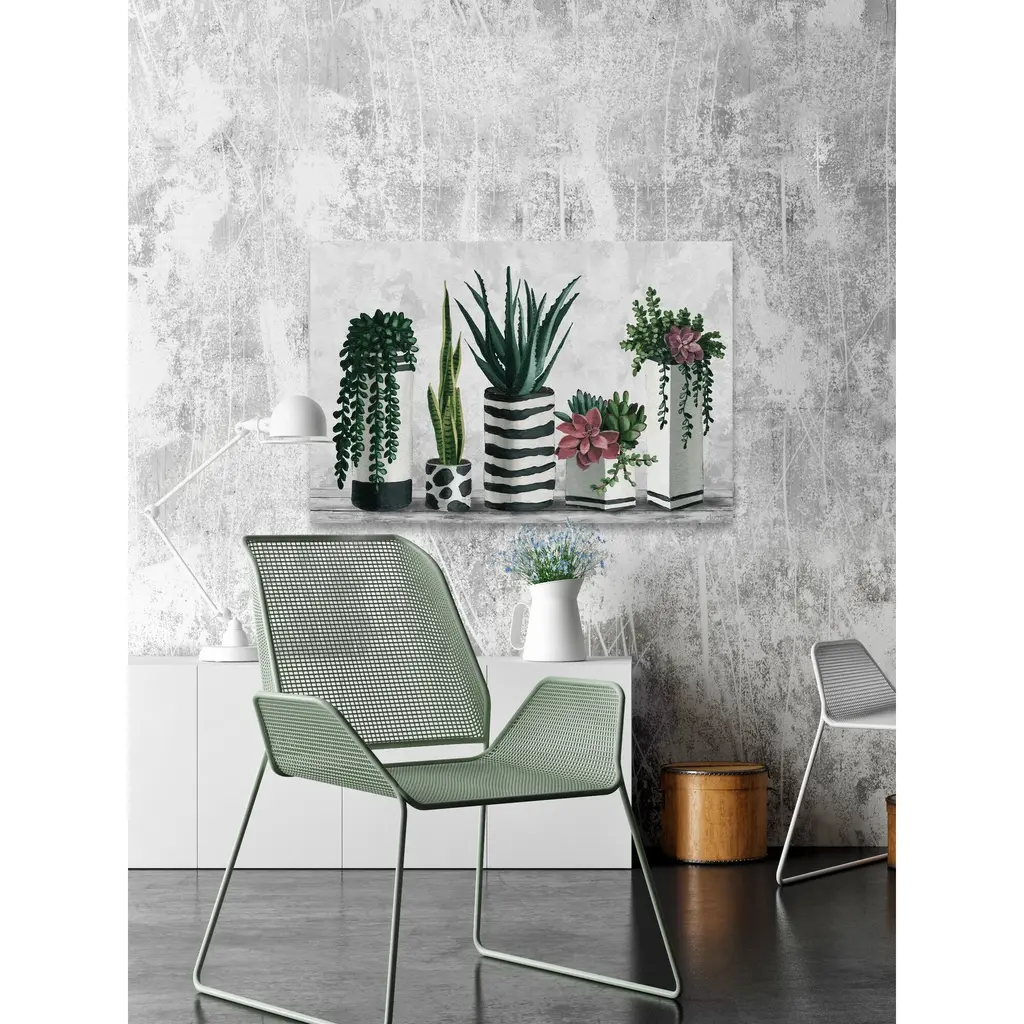 'Succulents And Patterned Pots' Painting Print On Wrapped Canvas - 30 X 20