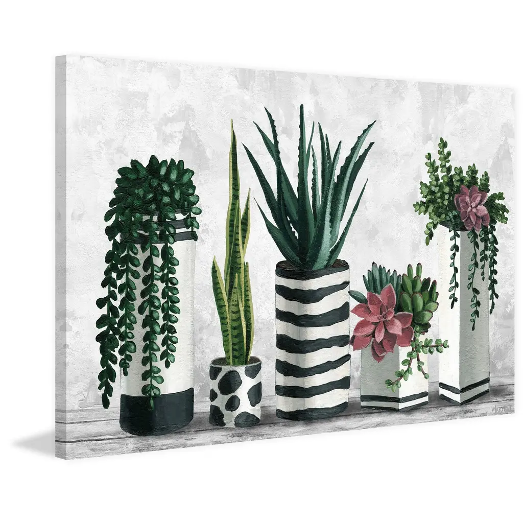 Chic and sophisticated, this painting print will instantly elevate any environment. In this, black and white colored potted succulents come together to reflect a sense of serenity. Proudly made in the USA, this piece is printed on canvas before it's stretched over non-warping wooden bars for a gallery-wrapped look. With wall-mounting hooks included, this artful accent is ready to hang up as soon as it reaches your front door. • Fine art canvas print from the Marmont Hill Art Collective • Professionally hand stretched • Gallery wrapped in sustainable, non-warping wood • Arrives ready to hang • Made in the USA • Includes a certificate of authenticity