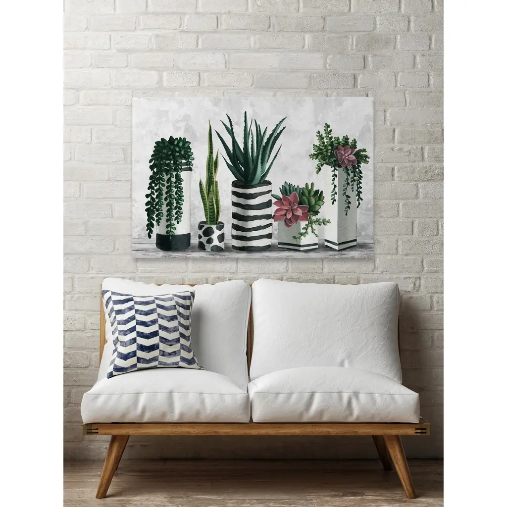 'Succulents And Patterned Pots' Painting Print On Wrapped Canvas - 45 X 30