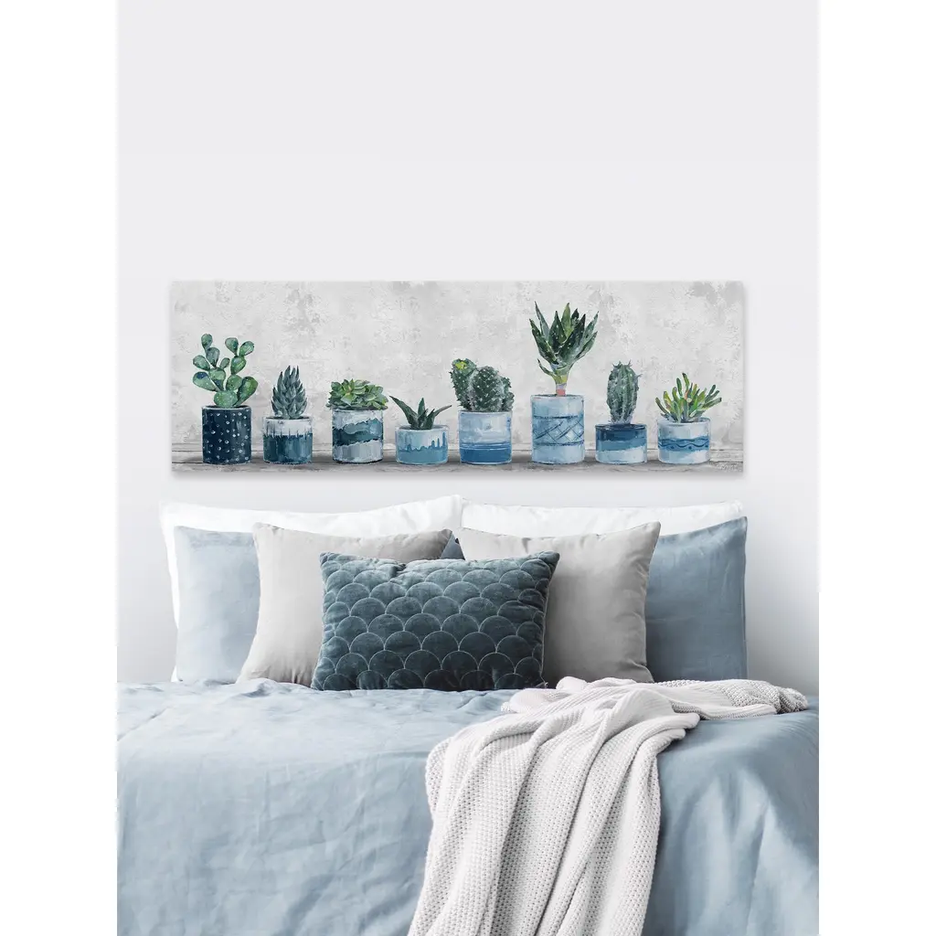 'Succulents In Blue Pots' Painting Print On Wrapped Canvas - 45 X 15