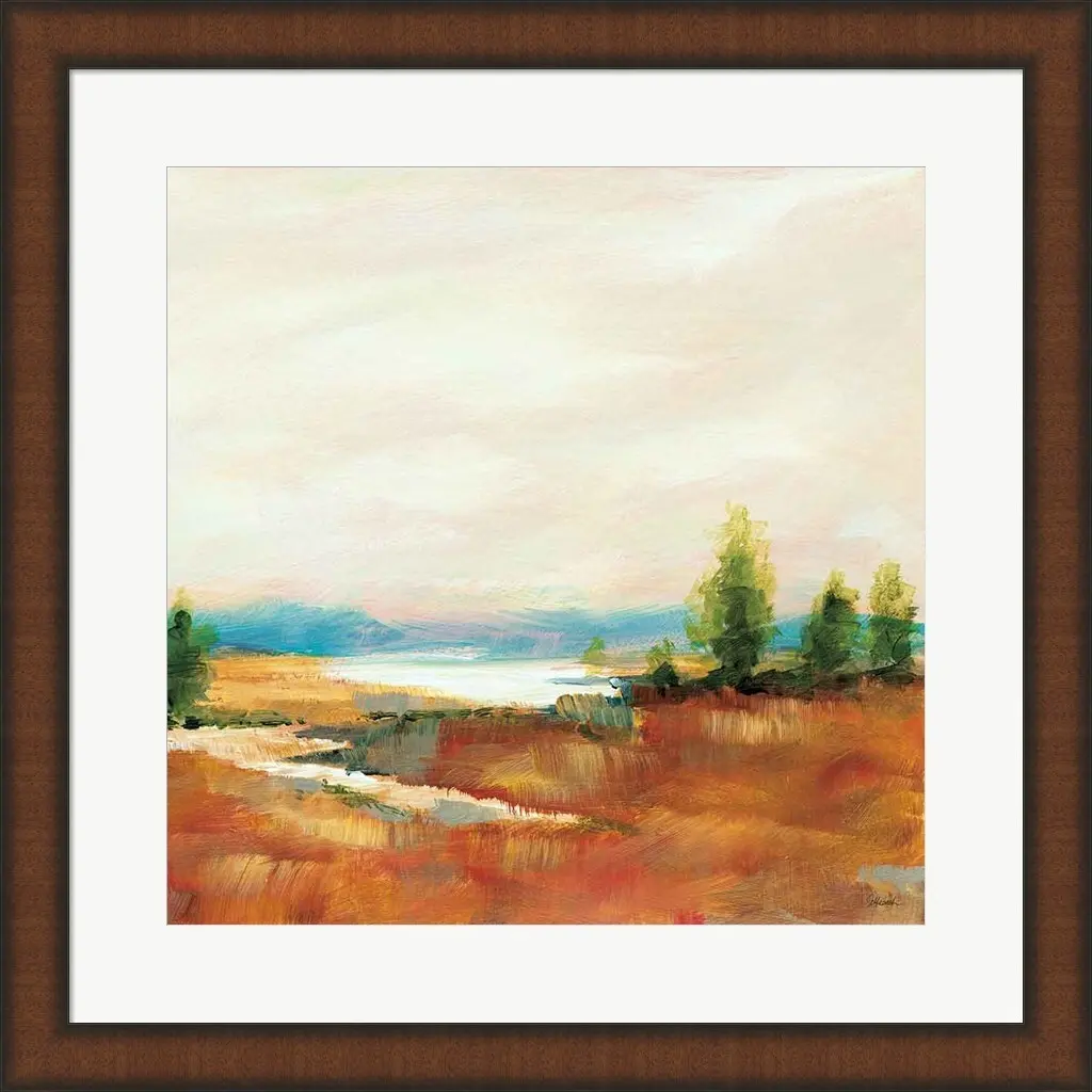 Amity Pond Sq by Sue Schlabach is a high quality piece of framed artwork. The finished size of this piece is 19.75" X 19.75" with an image size of 14" X 14". It has a Slim Teak Espresso Brown Edges frame with a 2" white mat and is finished with high quality Glass. 100% Satisfaction Guaranteed.