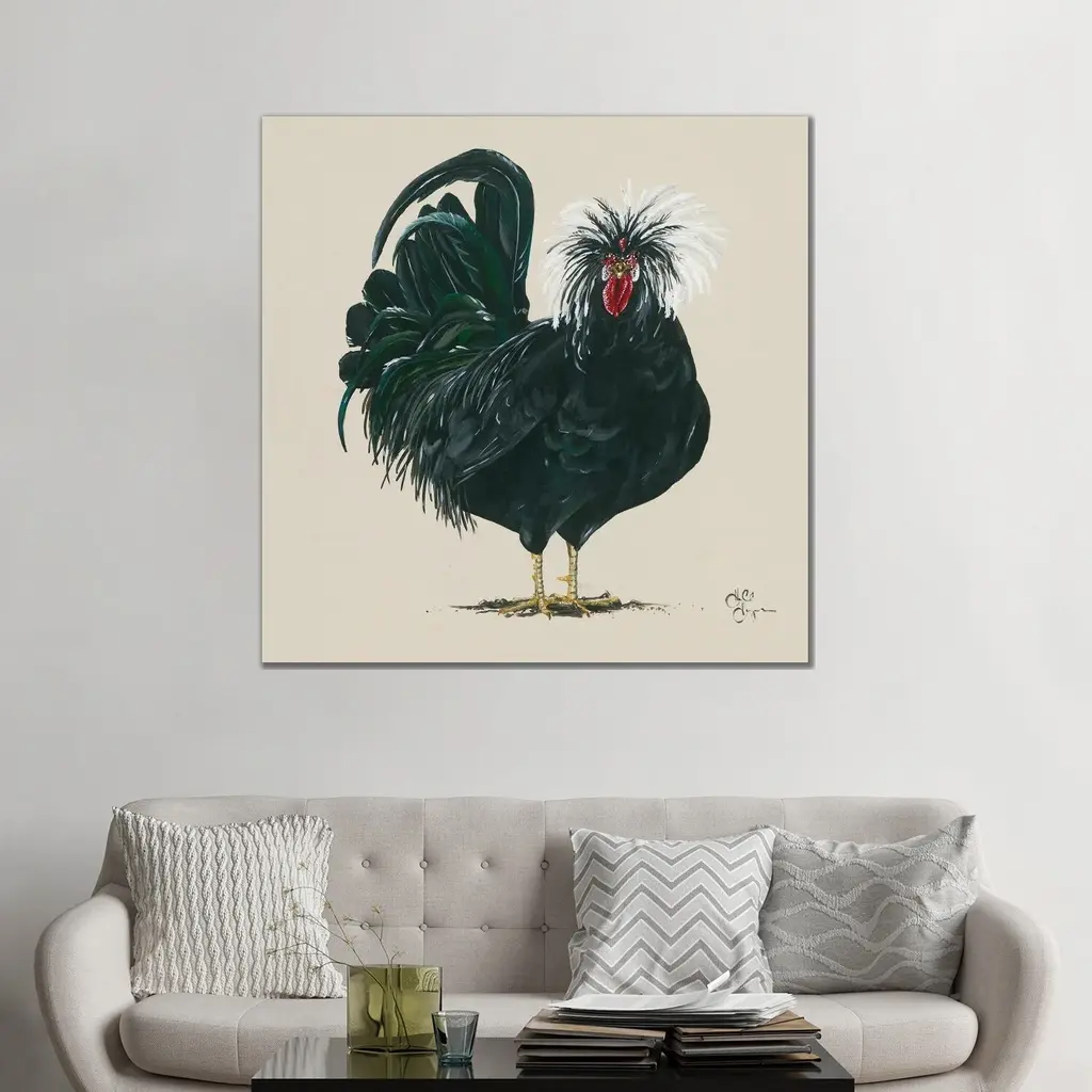 Cottage Rooster I by Sue Schlabach is a high quality piece of canvas artwork. The finished size of this piece is 12" X 12", and it has a depth 1.5". There is a UV protective coating over the entire image, and it is ready to hang on your wall with a standard drywall screw (not included). 100% Satisfaction Guaranteed.