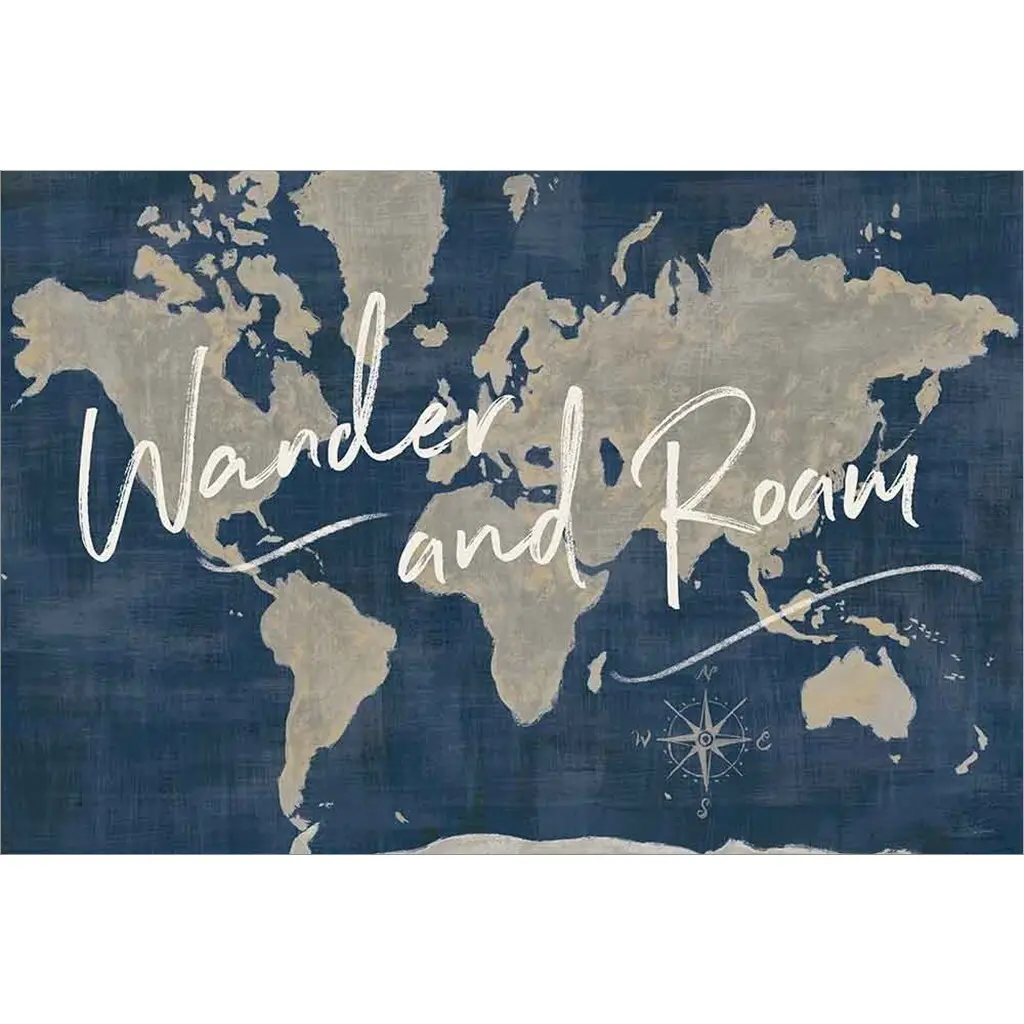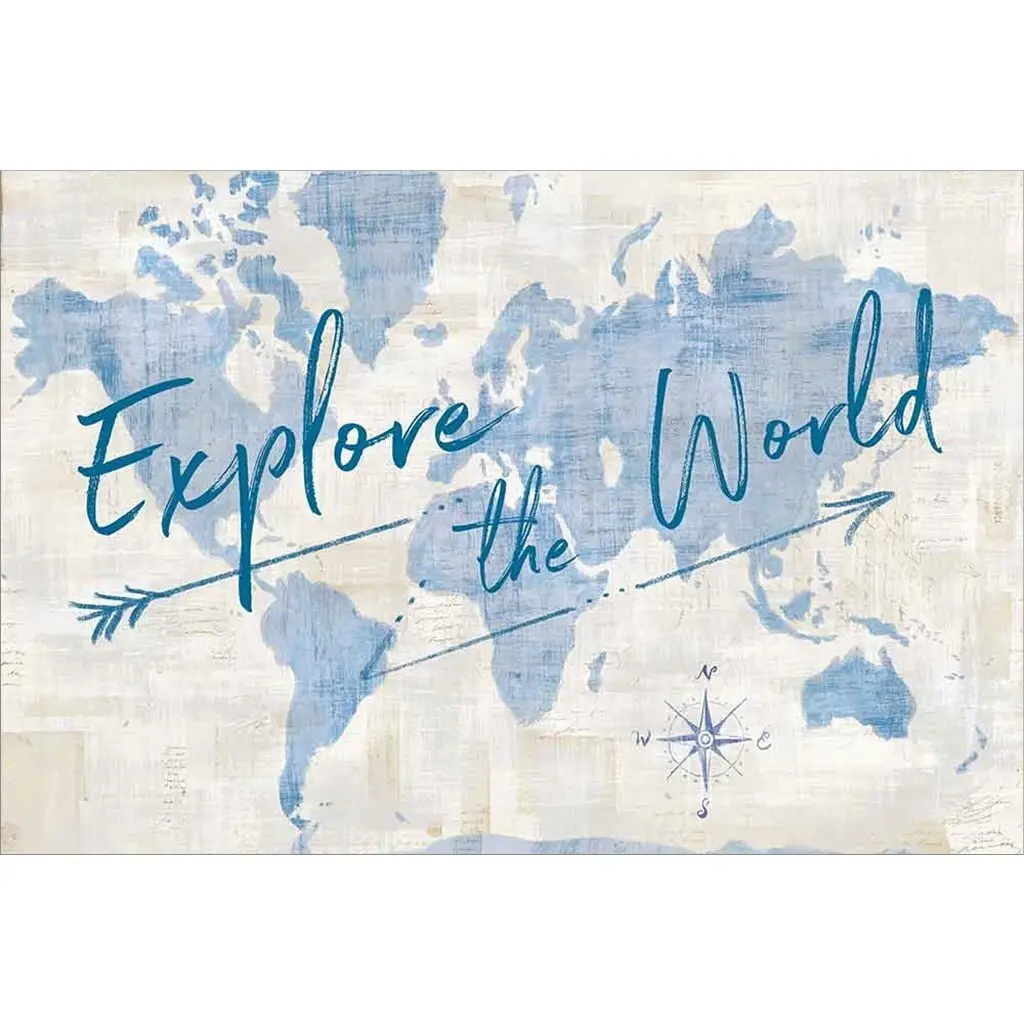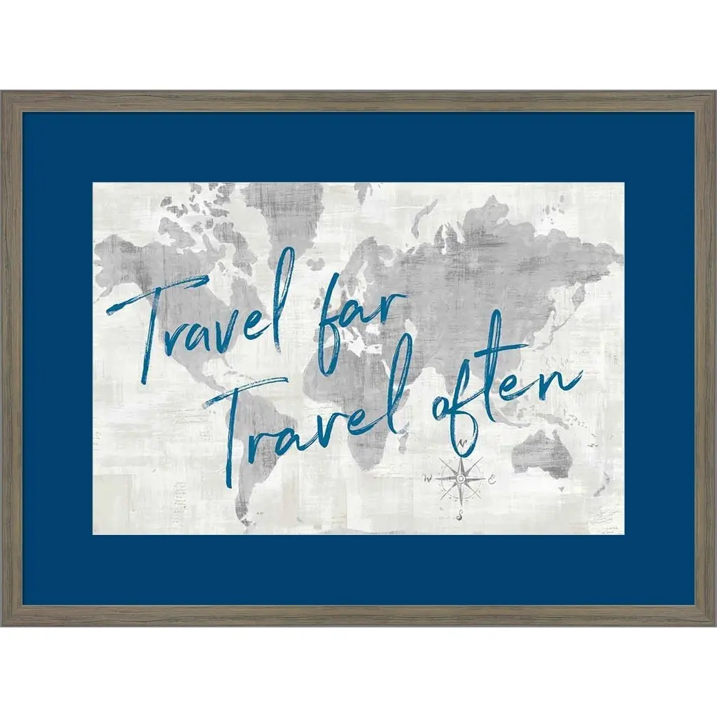 World Map Collage Travel by Sue Schlabach is a high quality piece of framed artwork. The finished size of this piece is 24" X 18". It has a Distressed Grey Knotty Wood frame, is single matted and finished with high quality Acrylic Plexiglass. 100% Satisfaction Guaranteed.