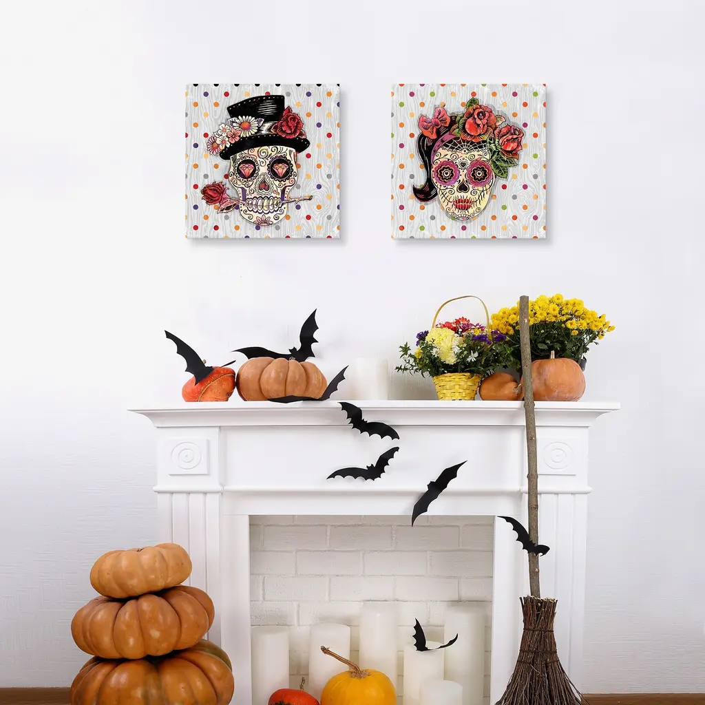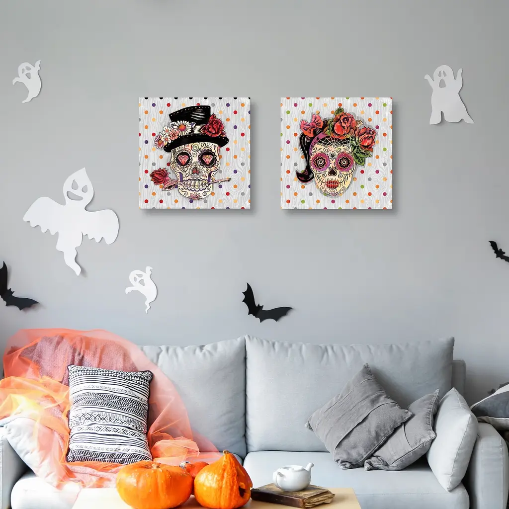 Sugar Skull Couple Dude, Sugar Skull Couple Girl By Geoff Allen Canvas Art Prints - 16x16x2