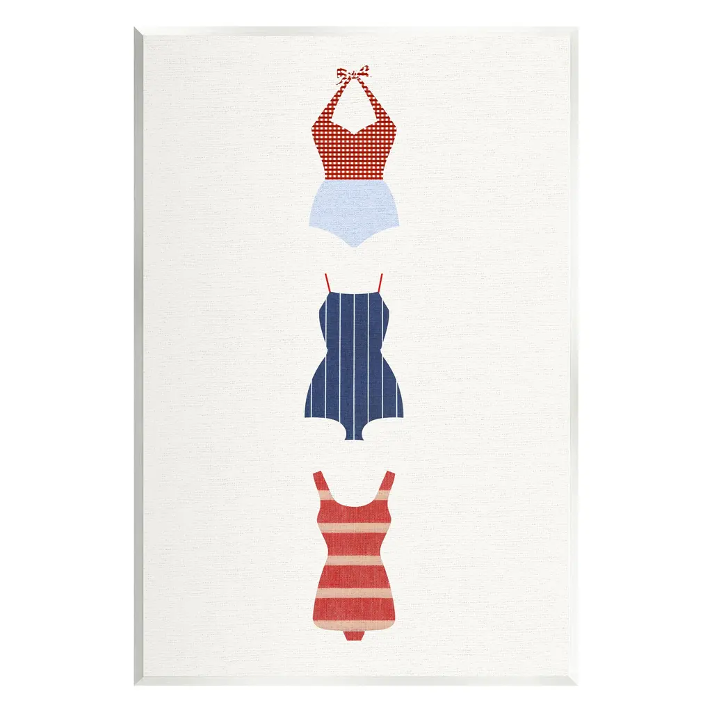 Crafted from paper cutouts and lengths of twine, this charming collage of a retro swimsuit is an ode to the past. Display individually or use all three together for a coastal-themed triptych.