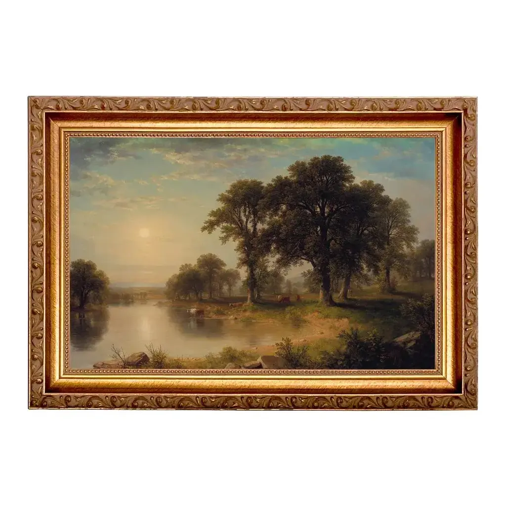 Accurate reproduction of the original oil painting by American painter Asher Brown Durand (1796-1886), this image is printed on canvas, mounted to a board and treated with a historic looking varnish. It is framed in a thin gold wood frame and comes with saw-tooth hook installed for hanging. Made in USA. A beautiful piece of artwork for your modern or traditional home, and the perfect small size to add to a gallery wall! • Painting print: 7 x 11" • Finished frame size: 9" x 13" • Frame width: 1-1/4" • Frame thickness: 1"