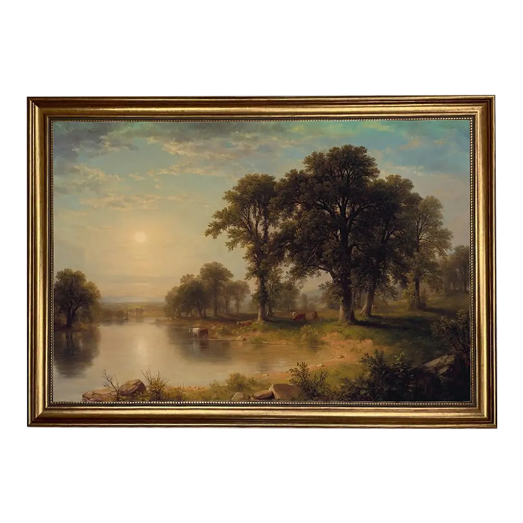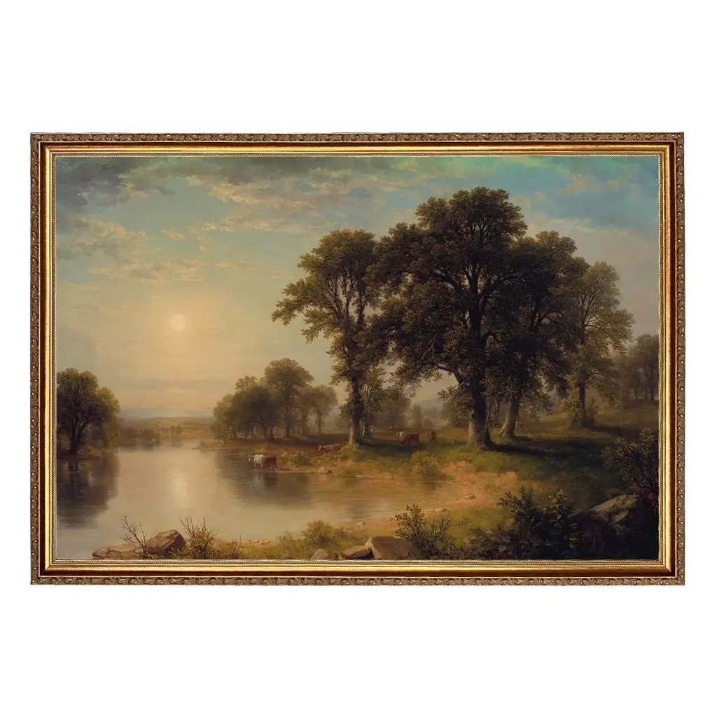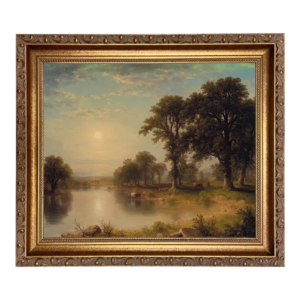 Accurate reproduction of the original oil painting by American painter Asher Brown Durand (1796-1886), this image is printed on canvas, mounted to a board and treated with a historic looking varnish. Framed in a thin gold wood frame, the back is finished with craft paper and a wire hanger. Made in the USA. Finished frame size: 22" x 32" Painting: 20" x 30" Frame width: 1.25" Frame thickness: 1"