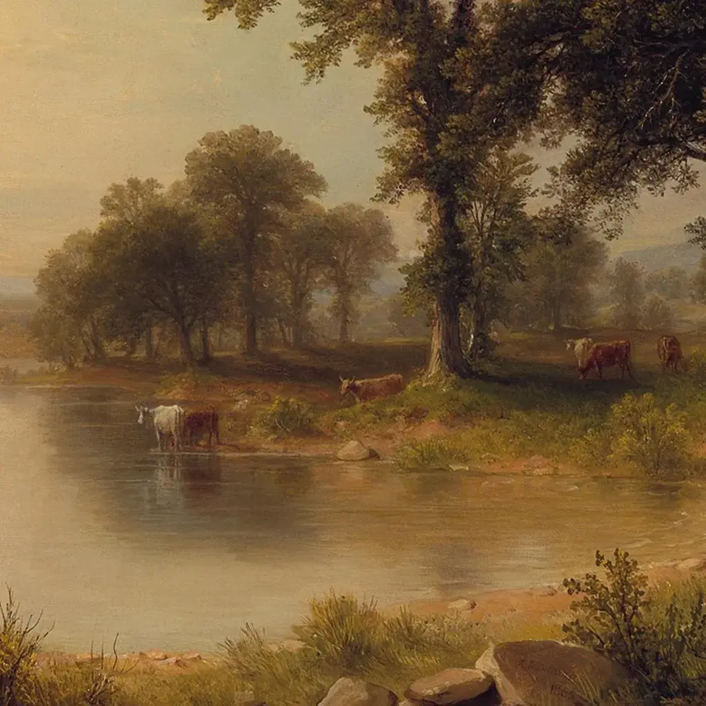 Accurate reproduction of the original oil painting by American painter Asher Brown Durand (1796-1886), this image is printed on canvas, mounted to a board and treated with a historic looking varnish. Framed in a thin gold wood frame, the back is finished with craft paper and a sawtooth hook. Made in the USA. A beautiful piece of artwork for your modern or traditional home, and the perfect small size to add to a gallery wall! • Painting print: 8" x 10" • Finished frame size: 10" x 12" • Frame width: 1-1/4" • Frame thickness: 1"