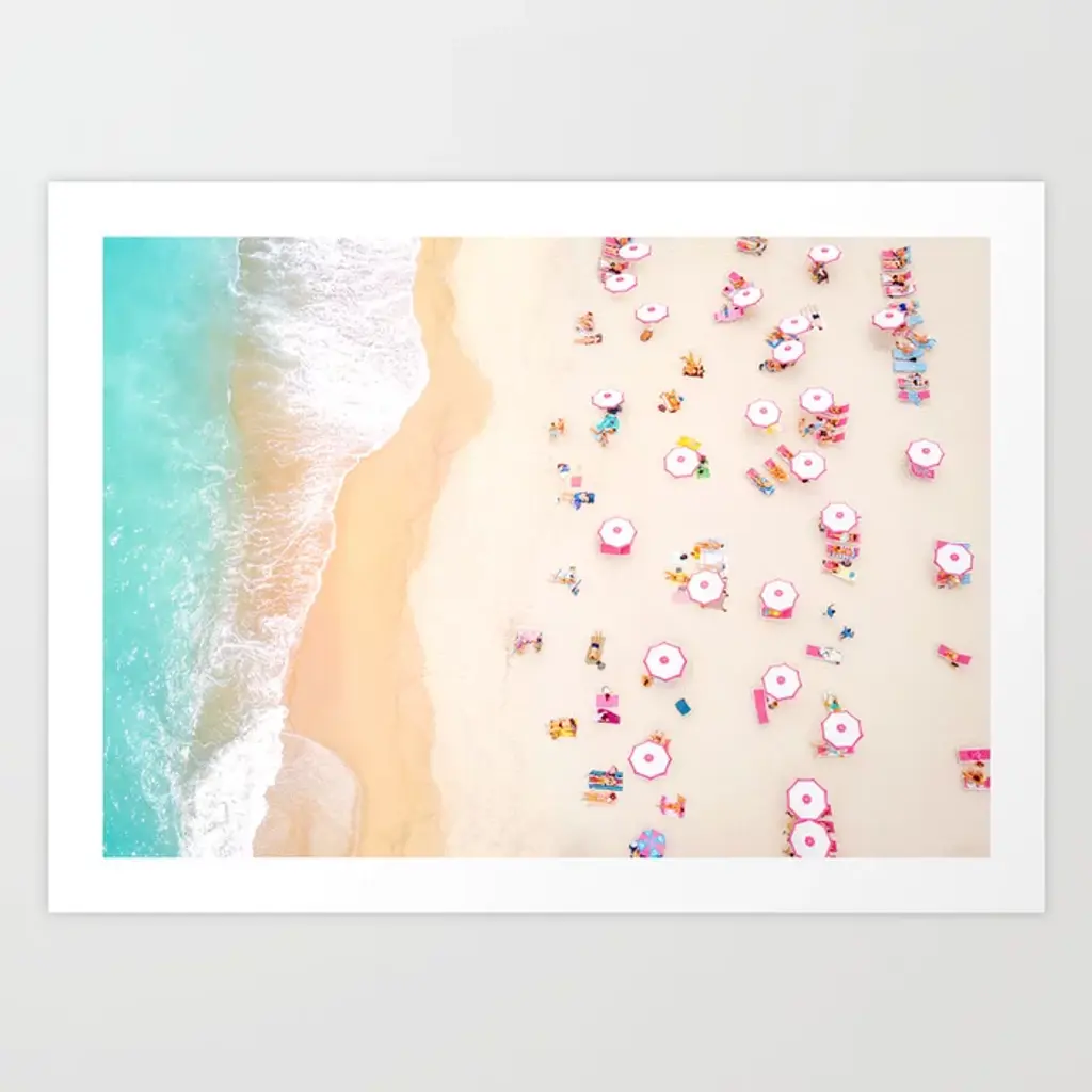 Infuse any space with the essence of this coastal framed print wall art titled "Summer Beach" by Kathrin Pienaar. The piece features a busy beach with clear green waters that will complement any trendy space. Handcrafted in Chattanooga, Tennessee, by Ready2HangArt using a locally sourced artist print, finished with a rear hanger for simple installation.