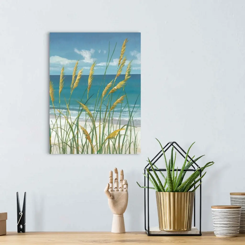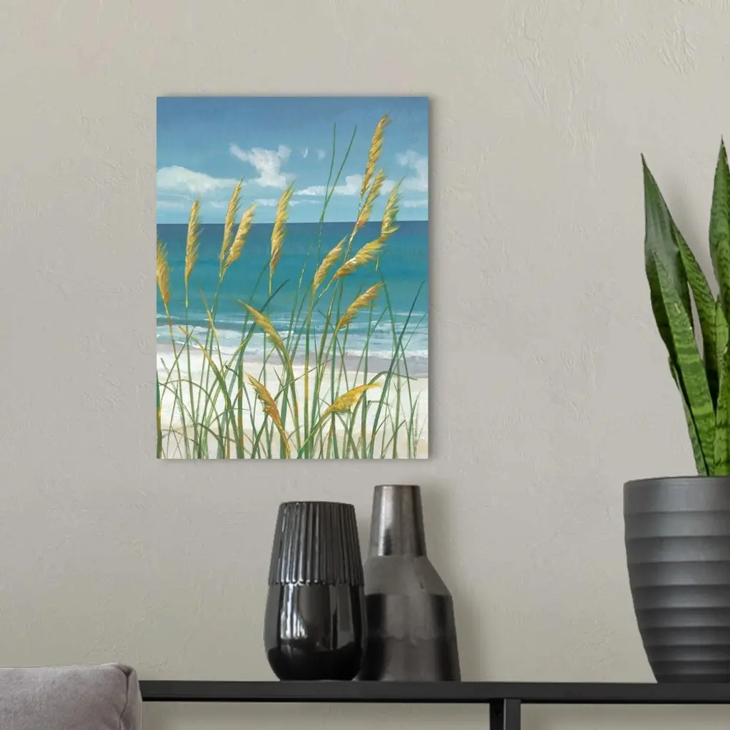 Contemporary painting of beach grasses swaying in the wind.