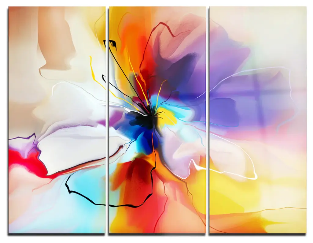 "Summer Flowers In Different Colors" Digital Metal Wall Art, 3 Panels, 36"x28"