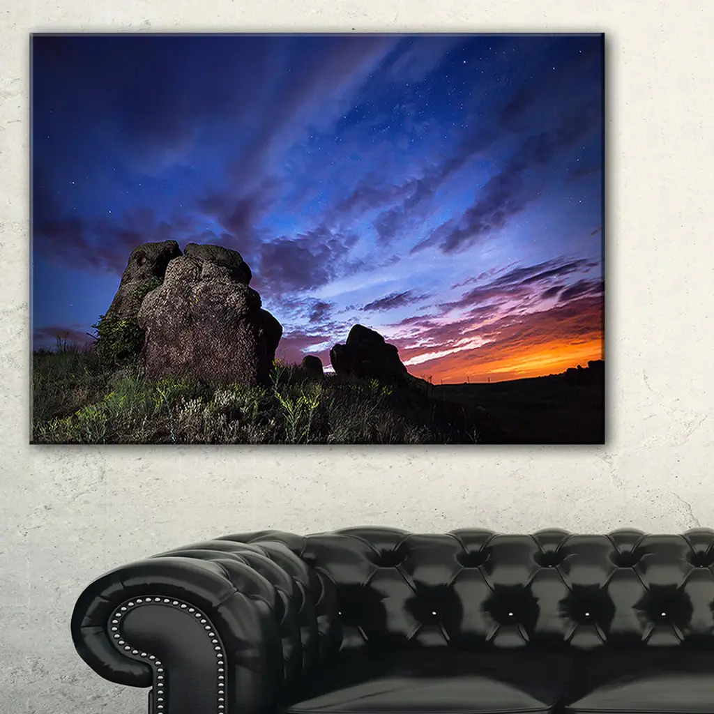 The Summer Night Blue Sky canvas art print is sure to make an impression on anyone who sees it. This artwork is gallery wrapped around a 1-inch solid wood frame and arrives carefully packaged and entirely ready to hang on the wall. Design Art only uses the highest resolution and pigments to ensure a crisp colorful print that is never faded or pixelated. This artwork is sure to be a conversation starter in any home or office.