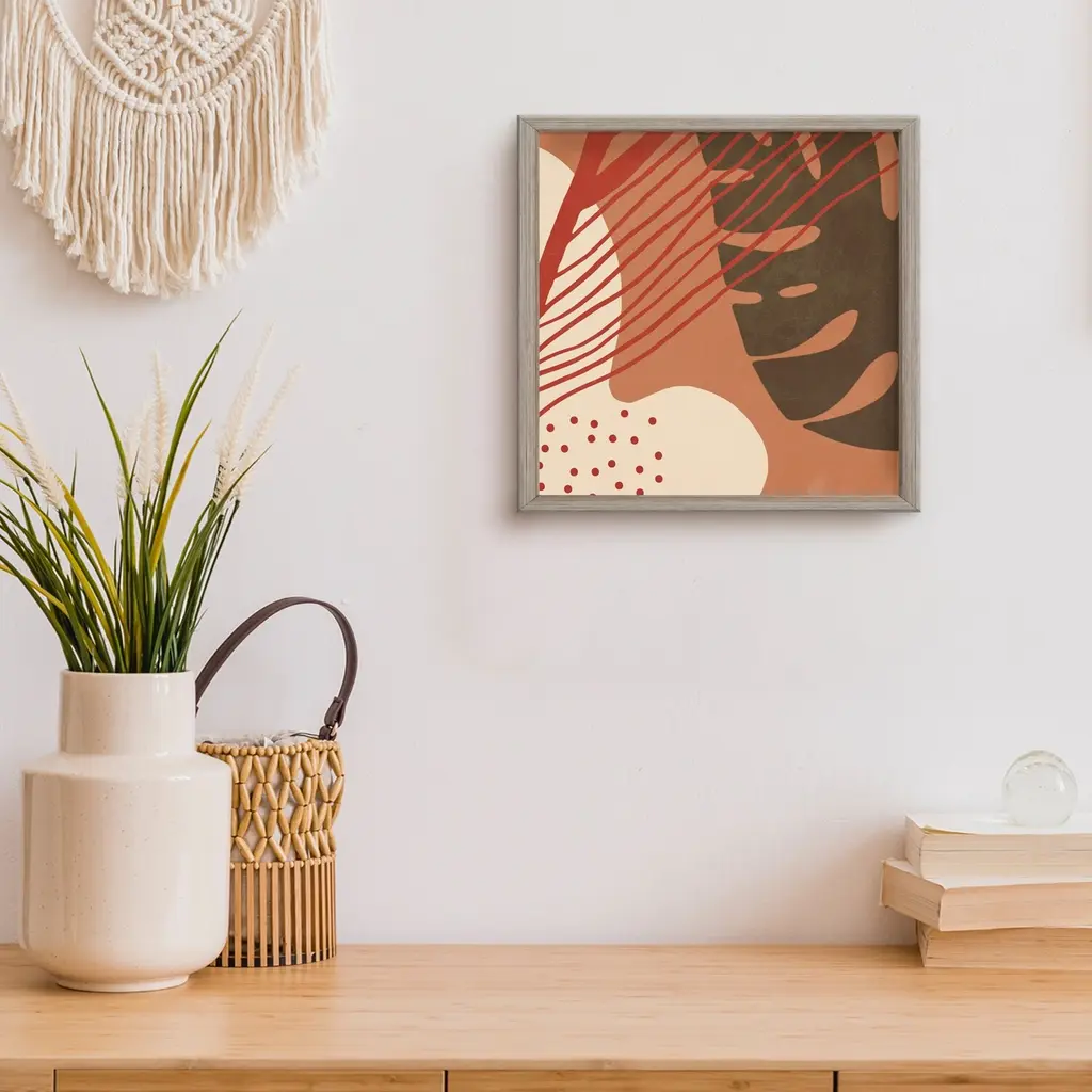 Rejuvenate your space with this trendy nomadic framed print art titled 'Summer Nomad IX' by ChiChi Decor. The square decorative artwork with shades of ivory, brown and burnt orange features an array of botanicals that will complement any contemporary decor's aesthetic. Designed and handcrafted in Chattanooga, Tennessee by Ready2HangArt, this artwork is assembled using an archival eco-friendly print on board and a white weathered pine wood frame, then finished with a rear hanger for simple installation. Offering a wide range of collections, ChiChi Decor will add on trend styles to any modern or contemporary space.Product Features: Expertly printed using archival ink on board Skillfully hand assembled with a white weathered pine wood frame Hanging hardware included for easy installation Made in the USA