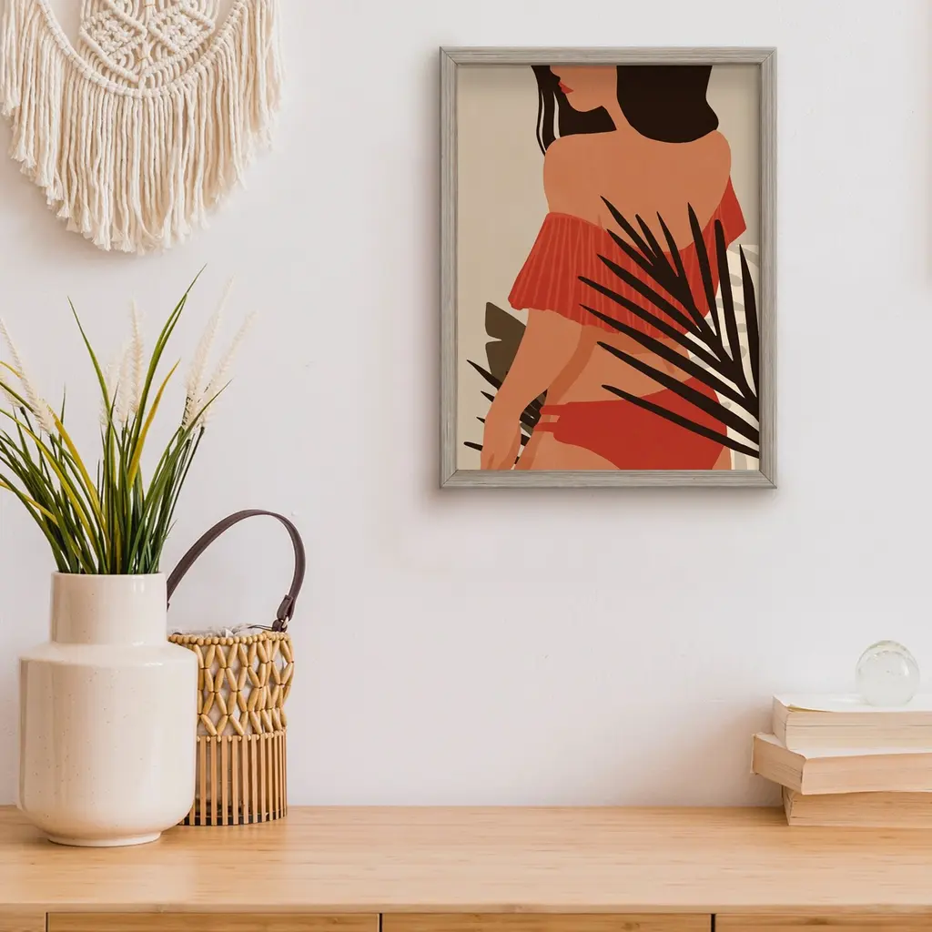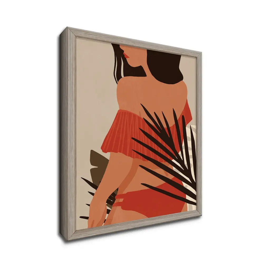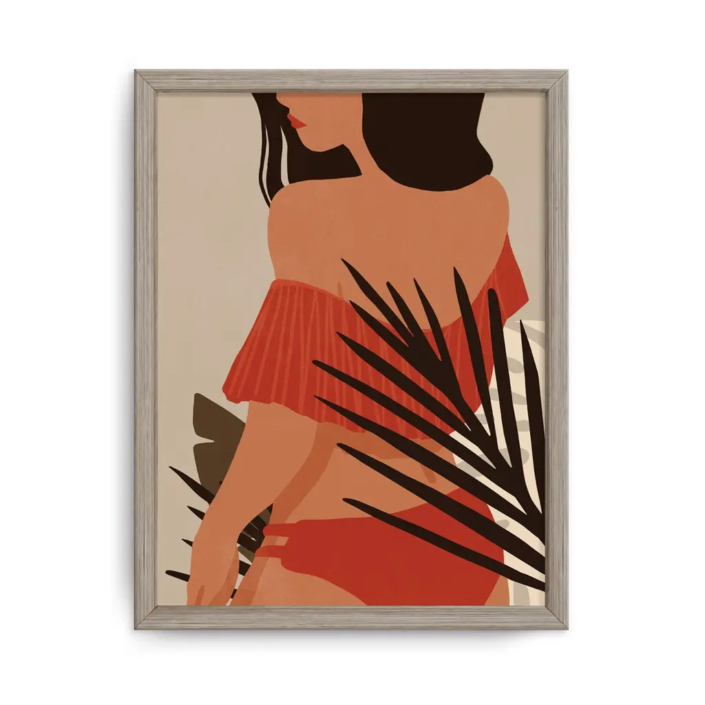 Rejuvenate your space with this trendy nomadic framed print art titled 'Summer Nomad XII' by ChiChi Decor. The vertical decorative artwork with shades of ivory, brown and burnt orange features a dark skinned woman in a red swimsuit that will complement any contemporary decor's aesthetic. Designed and handcrafted in Chattanooga, Tennessee by Ready2HangArt, this artwork is assembled using an archival eco-friendly print on board and a white weathered pine wood frame, then finished with a rear hanger for simple installation. Offering a wide range of collections, ChiChi Decor will add on trend styles to any modern or contemporary space.Product Features: Expertly printed using archival ink on board Skillfully hand assembled with a white weathered pine wood frame Hanging hardware included for easy installation Made in the USA