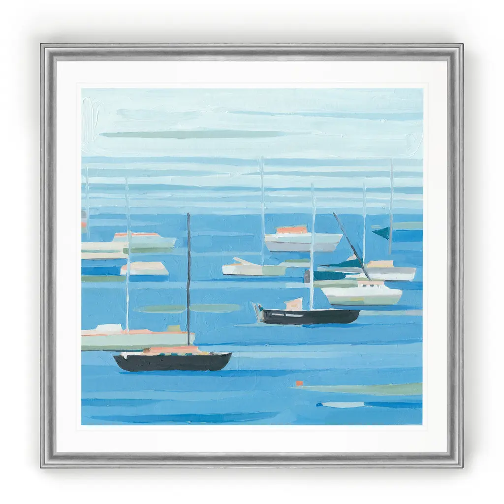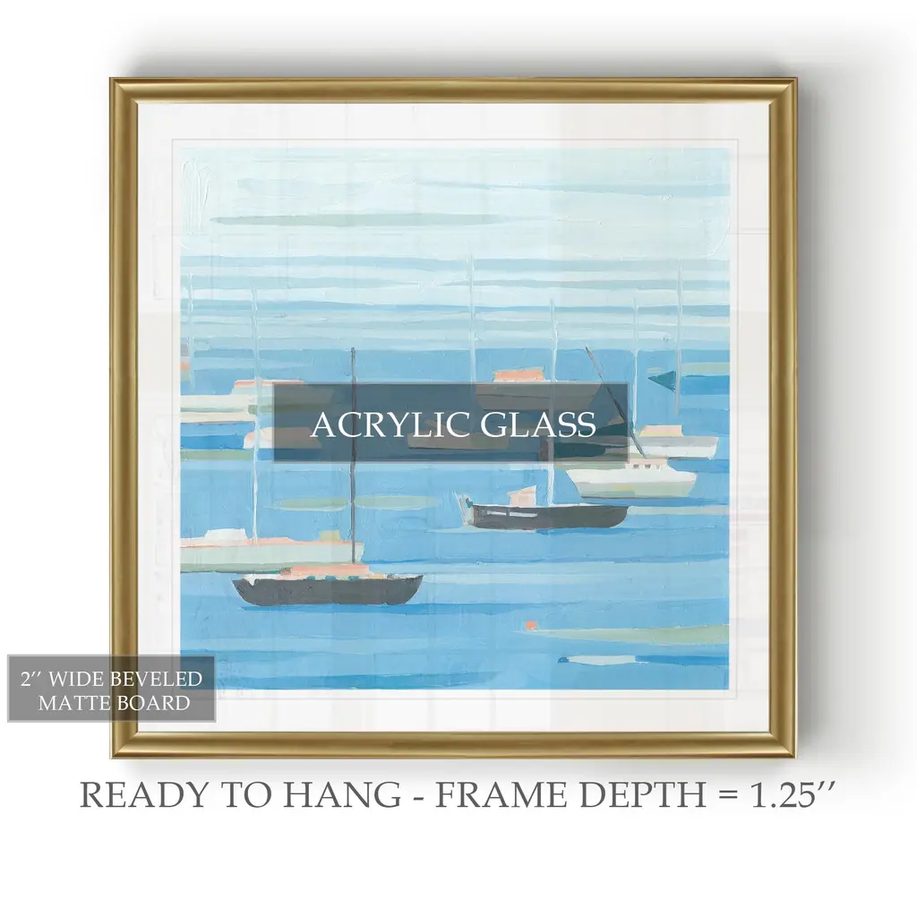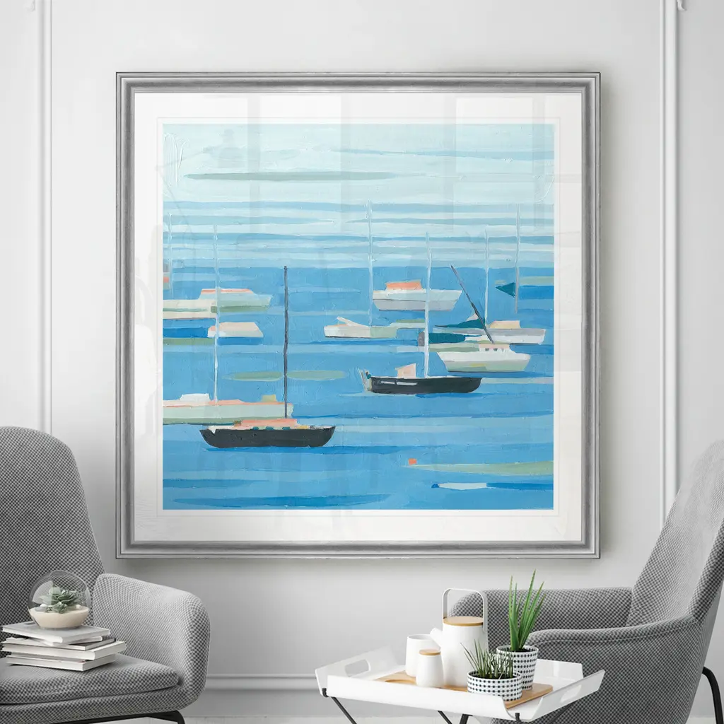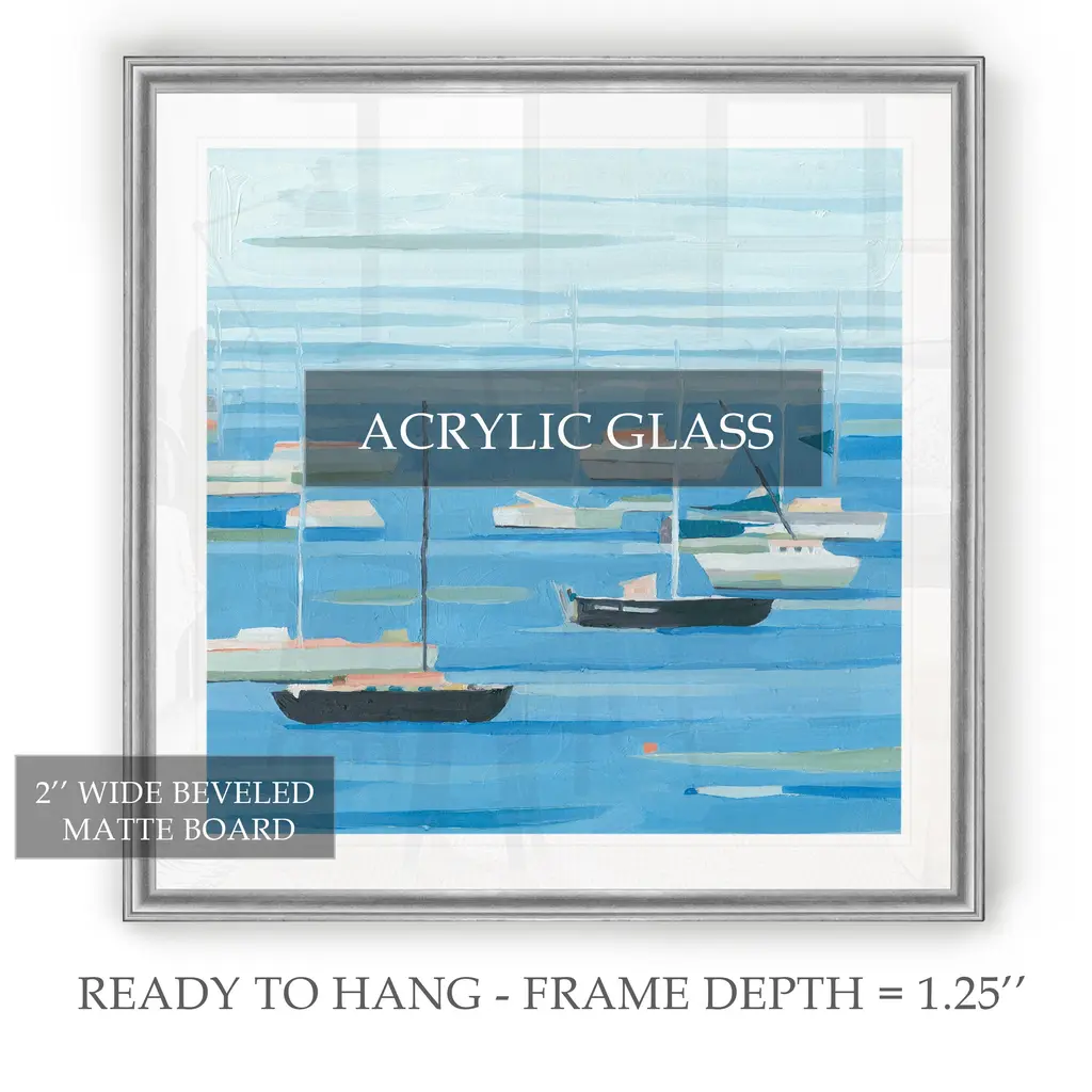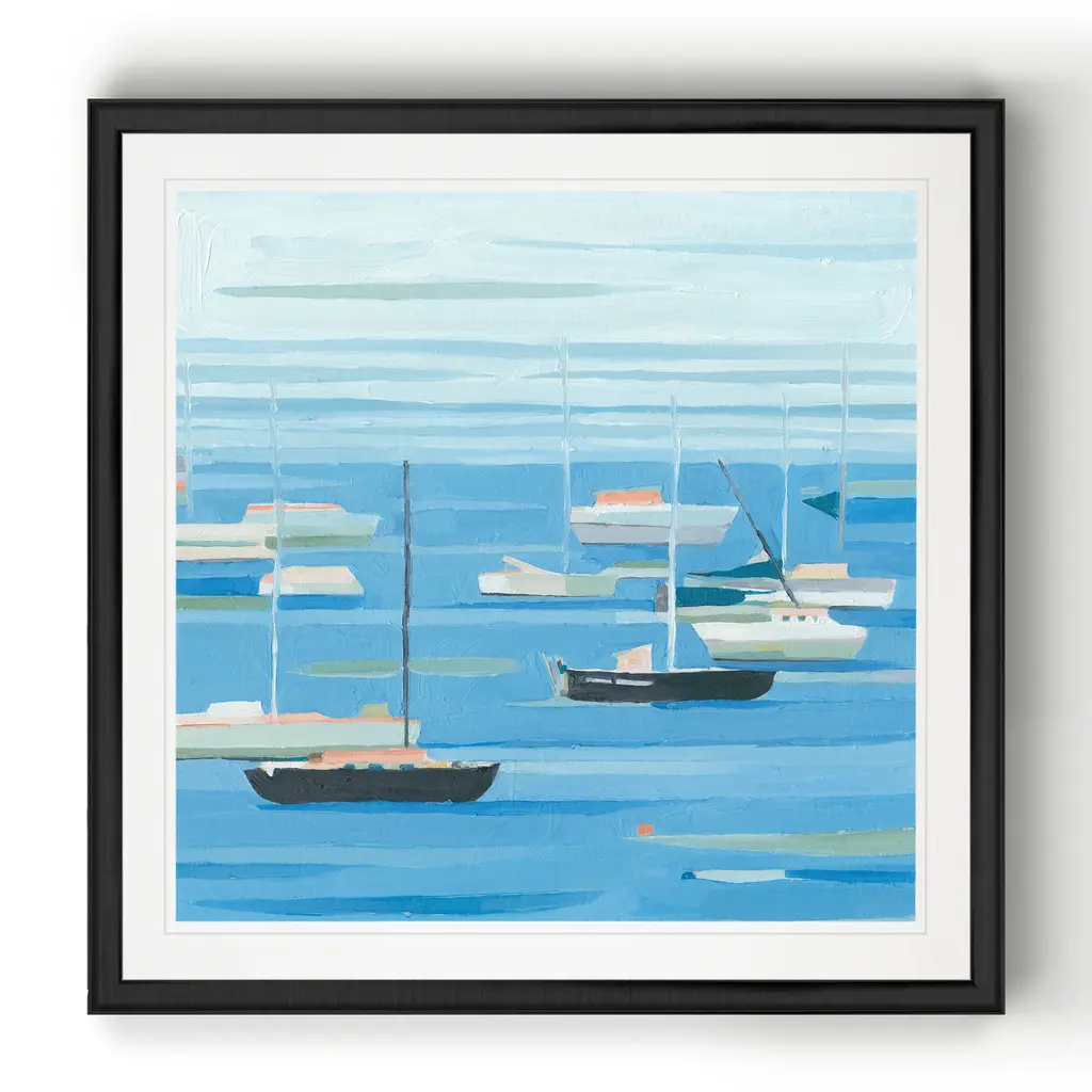 Summer Regatta II -Black Framed Print A premium Black Framed giclee print Featuring a beveled a matt , acrylic glass, and a high quality giclee print 5 SIZES AVAILABLE 34''x34''- Overall Size 30''x30'' - Overall Size 26''x26''' - Overall Size 22''x22''' - Overall Size 18''x18''' - Overall Size Each piece is made to order. Built to Last Each piece comes ready to hang Fade and Water resistant Made domestically
