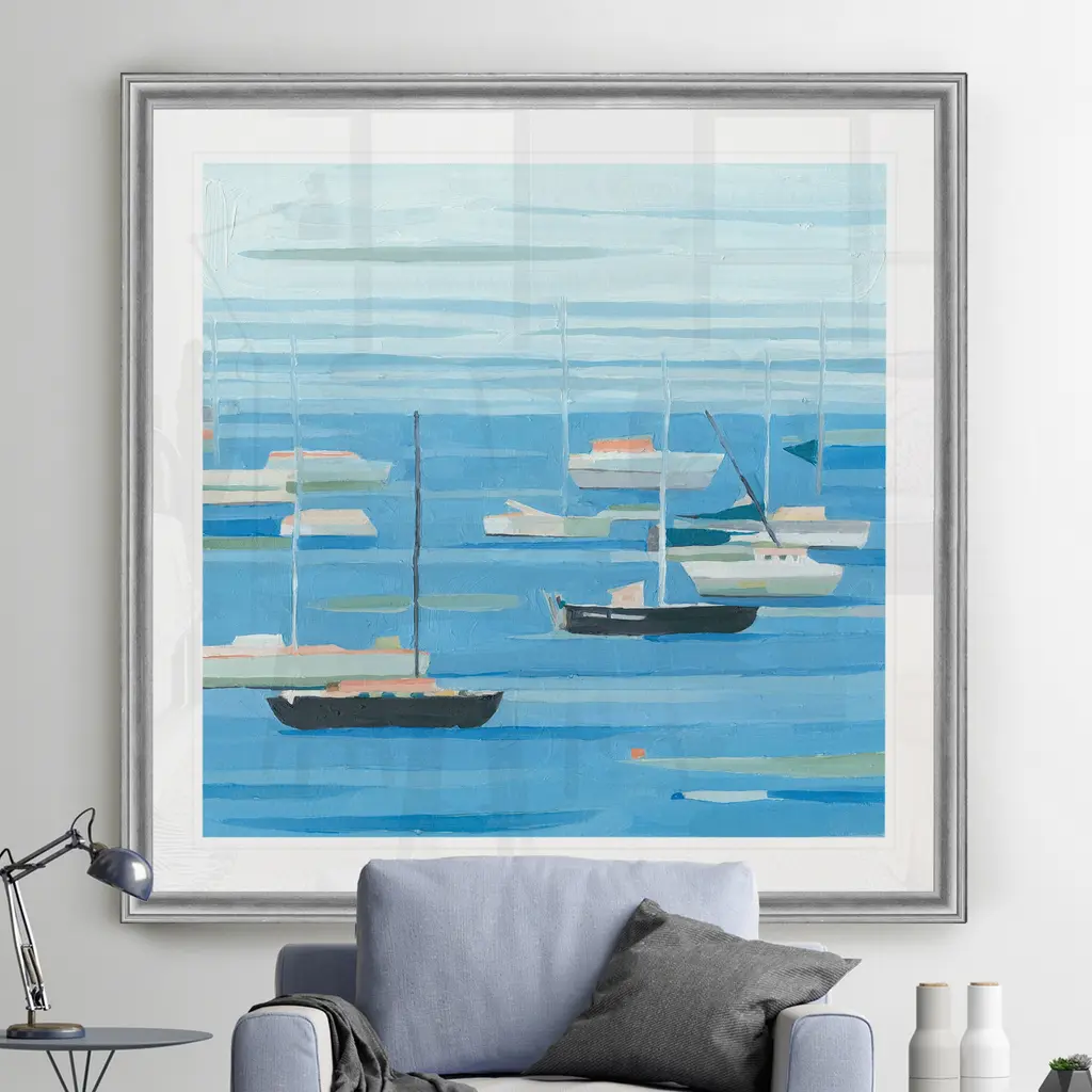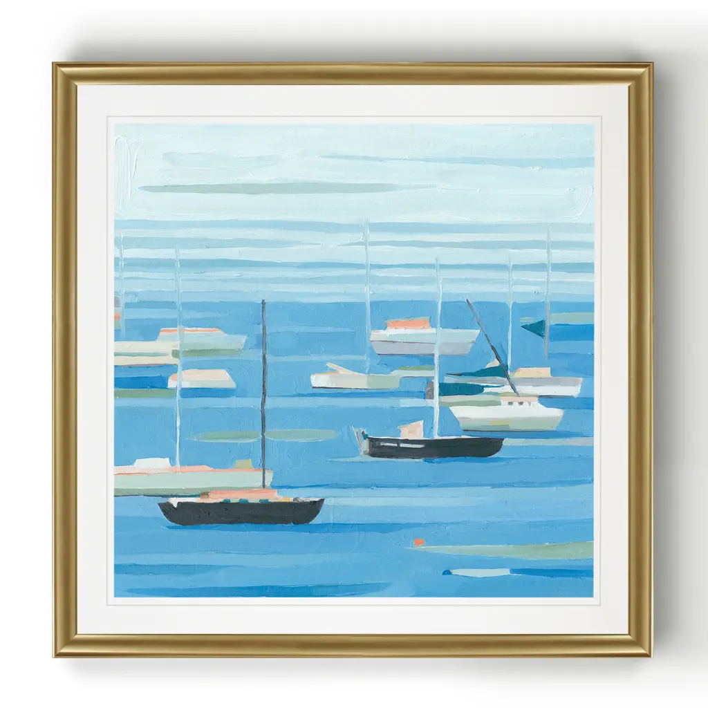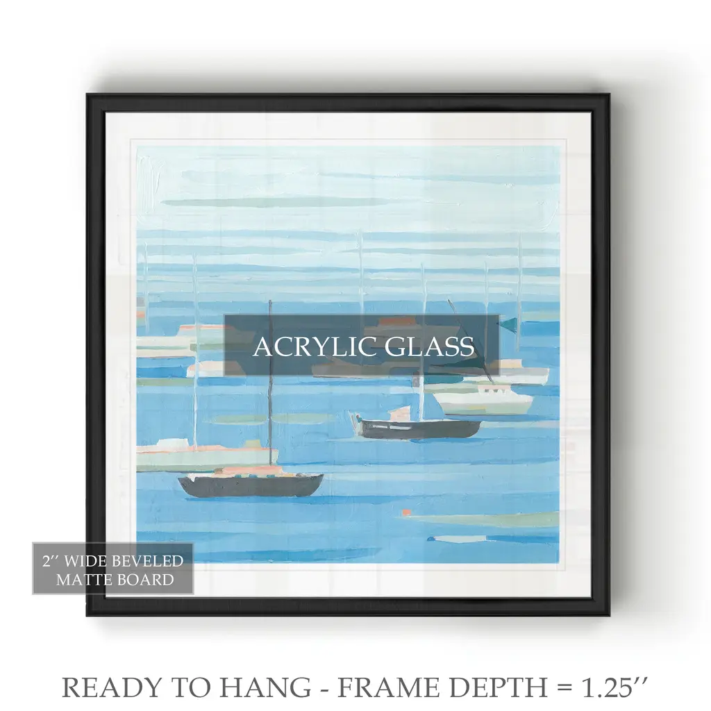 Summer Regatta II -Black Framed Print A premium Black Framed giclee print Featuring a beveled a matt , acrylic glass, and a high quality giclee print 5 SIZES AVAILABLE 34''x34''- Overall Size 30''x30'' - Overall Size 26''x26''' - Overall Size 22''x22''' - Overall Size 18''x18''' - Overall Size Each piece is made to order. Built to Last Each piece comes ready to hang Fade and Water resistant Made domestically