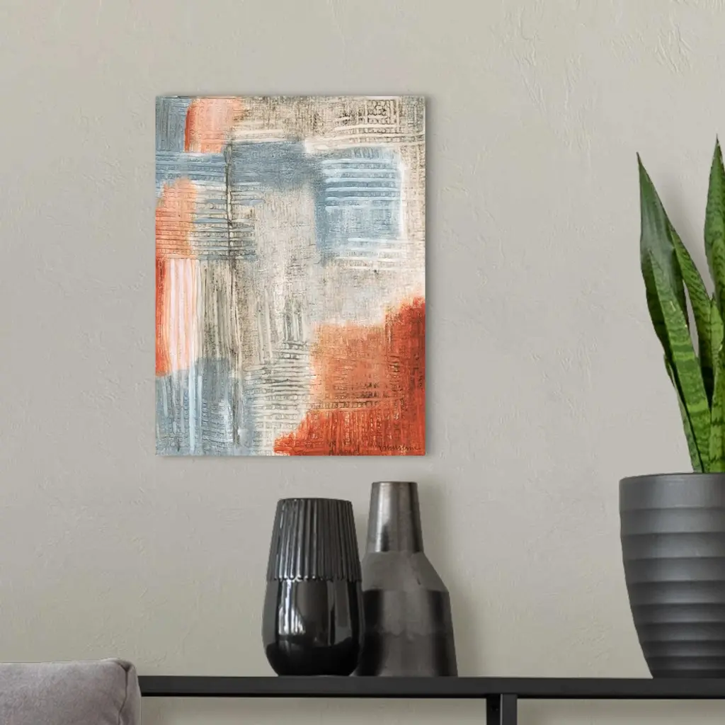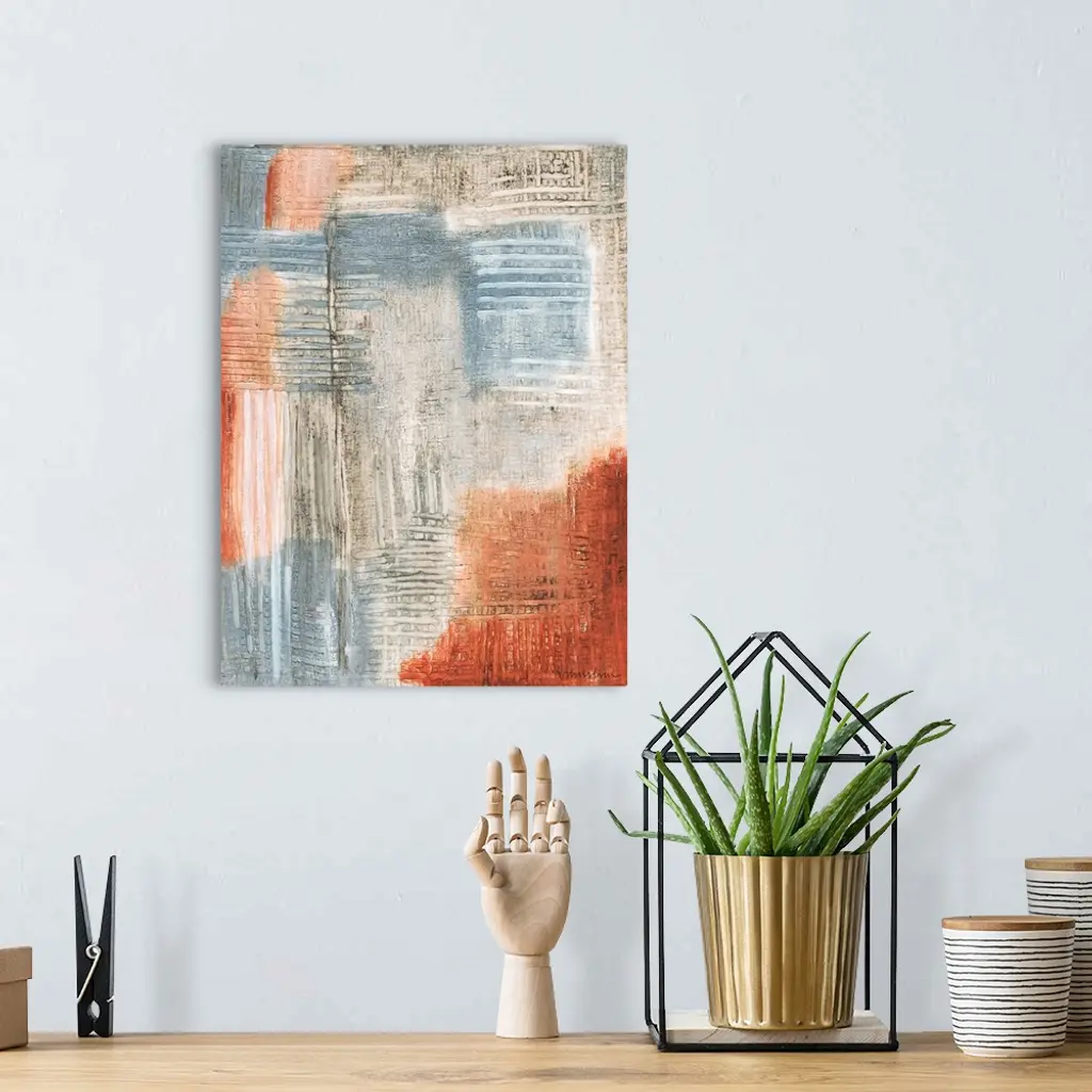 Contemporary abstract artwork with streaks and texture, resembling rust.