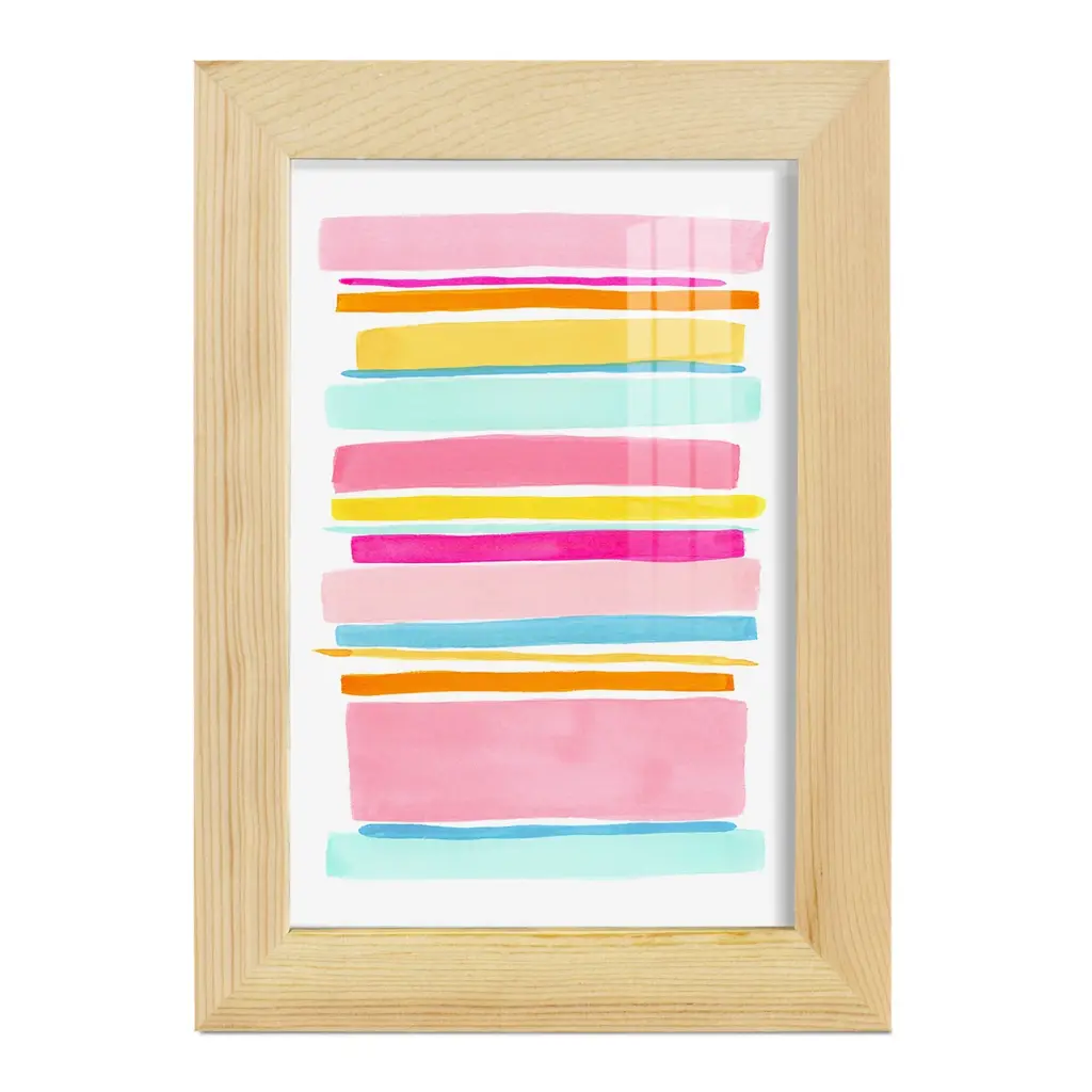 Summer Stripes I -EZ SWITCH Framed Print w/glass-Cherry Red A delightful, framed print. Featuring a solid wood frame with real wood glass. This premium print is giclee quality. In addition, every frame features a removable back and table top stand. This allows you to change your art in the future or to just stand the art on a table for a new look. We are sure you'll enjoy our new series of EZ SWITCH Framed Art. Solid Wood Frame Real Glass Removable / Replaceable Art Built in Tabletop Stand Sizes range from 4x6 up to 12x15 - buy just one or pair them up as sets as you see fit.