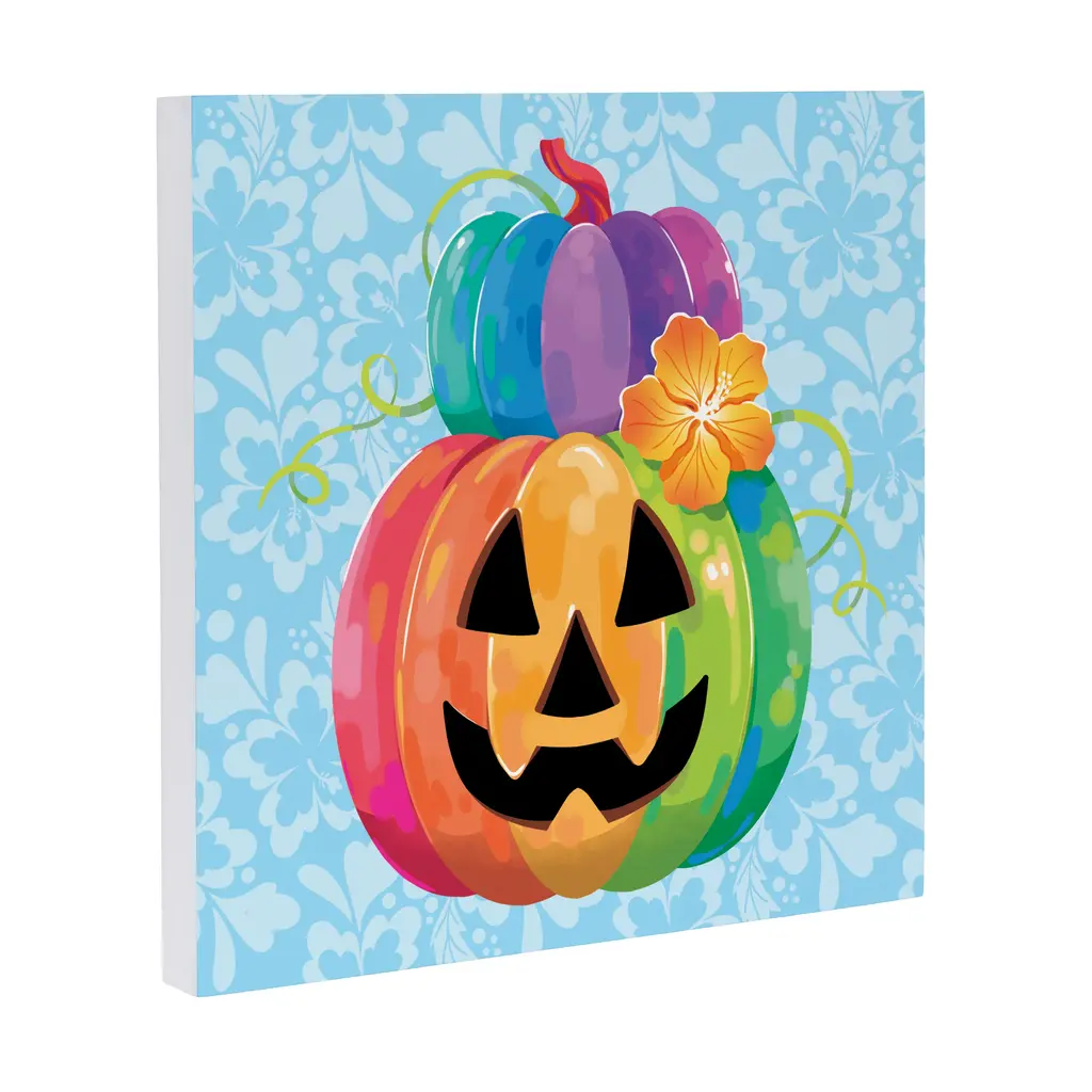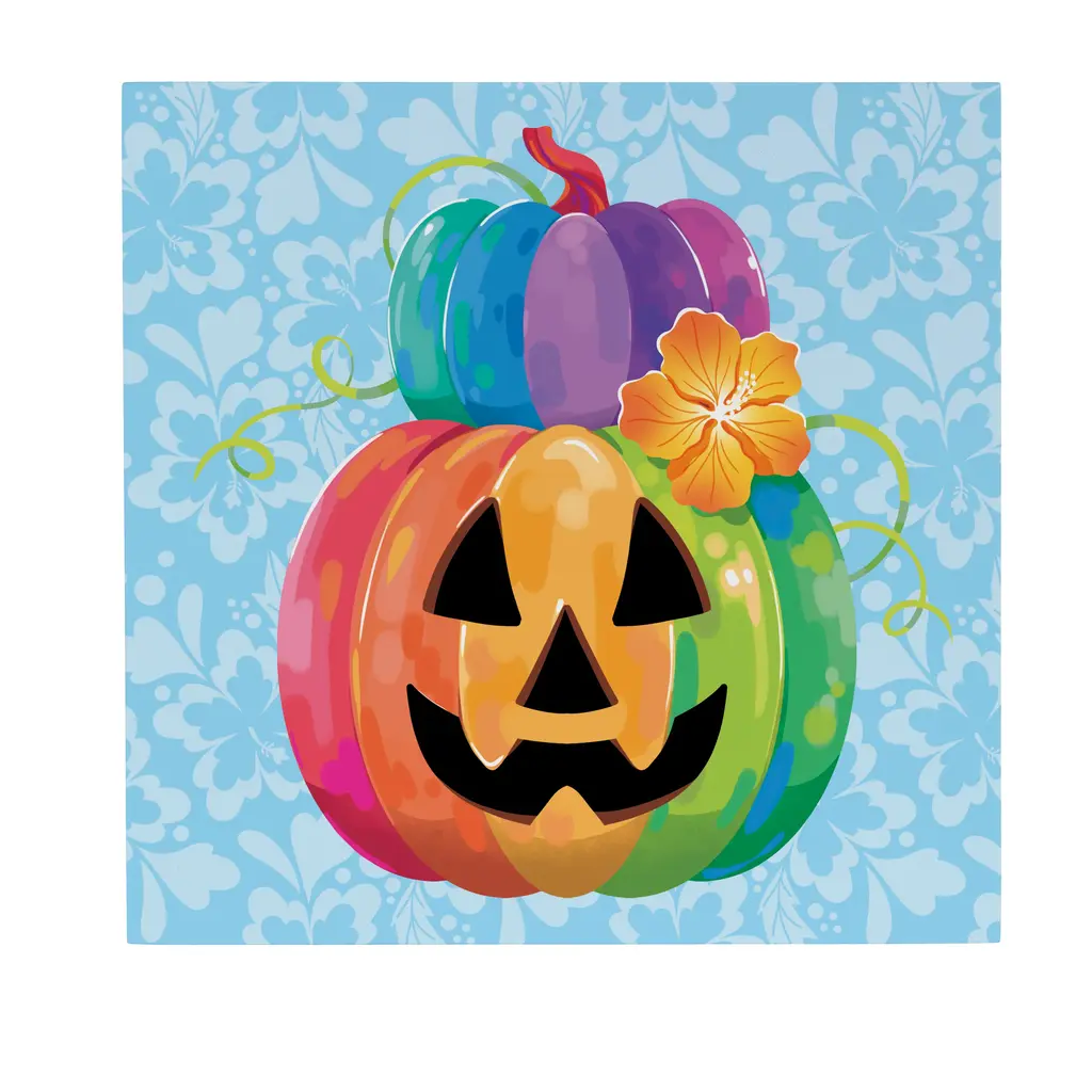 Even Jack O' Lanterns deserve a break from all that haunting and howling. This sun-loving pumpkin has swapped spooky nights for sunny vibes, trading candlelight for a cocktail and cobwebs for palm trees. With a vibrant tropical color palette and a laid-back grin, he’s clearly embracing the sweet side of summer. This bold and breezy wall décor is the perfect way to blend a love of Halloween with love of the sun. Whether throwing a Summerween bash or just want to keep the spooky spirit alive year-round, this tropical Jack O' Lantern is here to remind everyone that ghouls just wanna have fun. Hang him up, pour a drink, and let the hauntcation begin!