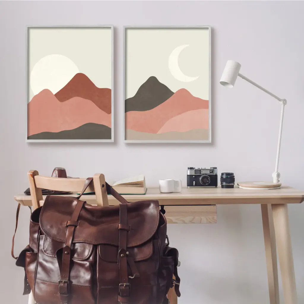 Sun And Crescent Moon Warm Dessert Canyon Landscape,24 X 30