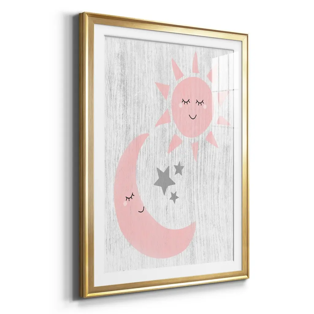 Sun and Moon Premium Framed Print - Ready to Hang A Premium Framed Print created to last. Framed in distressed wood and available in an array of sizes and colors Featuring a beveled a solid wood stretcher bar, each piece comes ready to hand 4 SIZES AVAILABLE 30.5''X42.5'' - Overall Size 26.5'X36.5'' - Overall Size 22.5''x30.5'' - Overall Size 18.5''x24.5'' - Overall Size Each piece is made to order. Each piece comes with hanging hardware. Made in the USA Ready to Hang Giclee Paper Print Acrylic Glass Beveled Matt Board