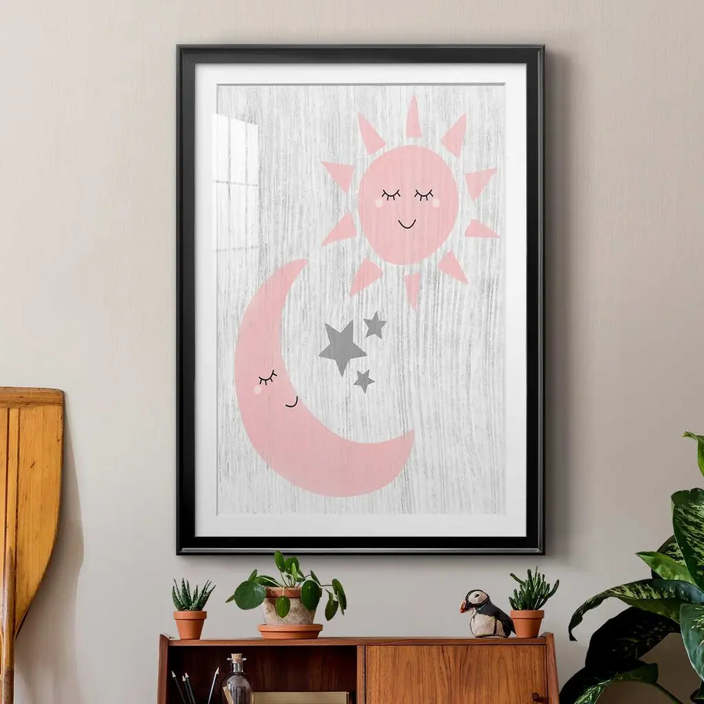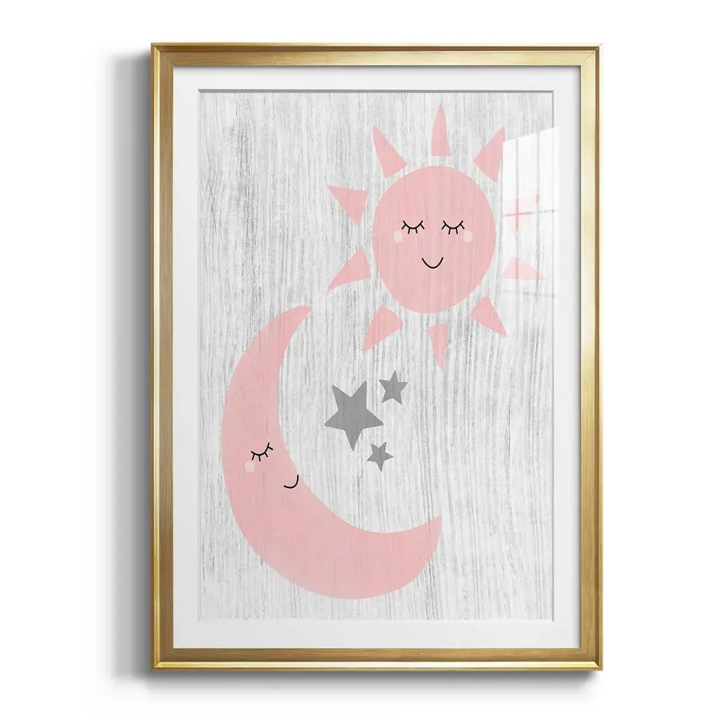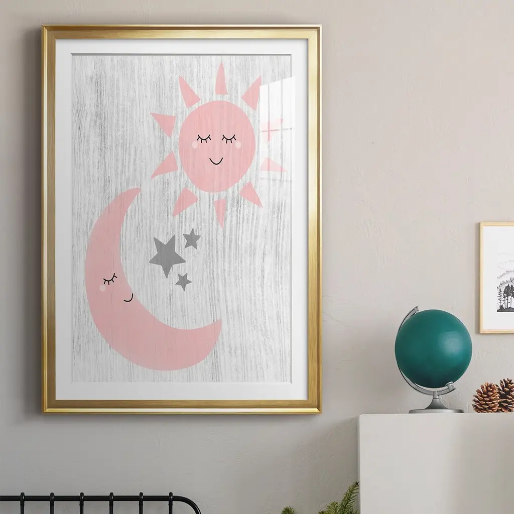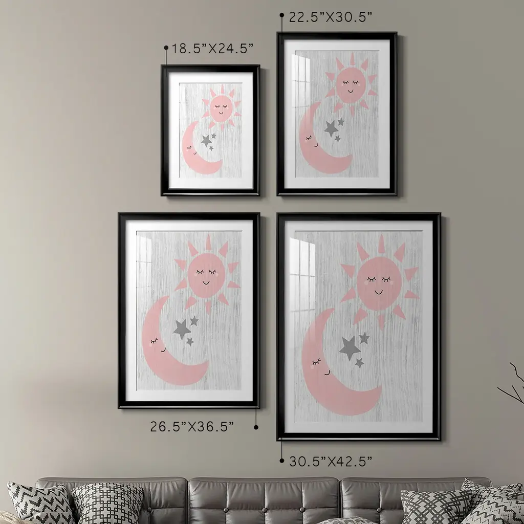 Sun and Moon Premium Framed Print - Ready to Hang A Premium Framed Print created to last. Framed in distressed wood and available in an array of sizes and colors Featuring a beveled a solid wood stretcher bar, each piece comes ready to hand 4 SIZES AVAILABLE 30.5''X42.5'' - Overall Size 26.5'X36.5'' - Overall Size 22.5''x30.5'' - Overall Size 18.5''x24.5'' - Overall Size Each piece is made to order. Each piece comes with hanging hardware. Made in the USA Ready to Hang Giclee Paper Print Acrylic Glass Beveled Matt Board