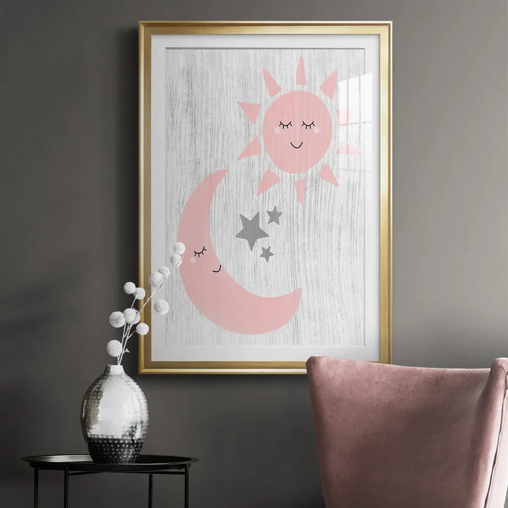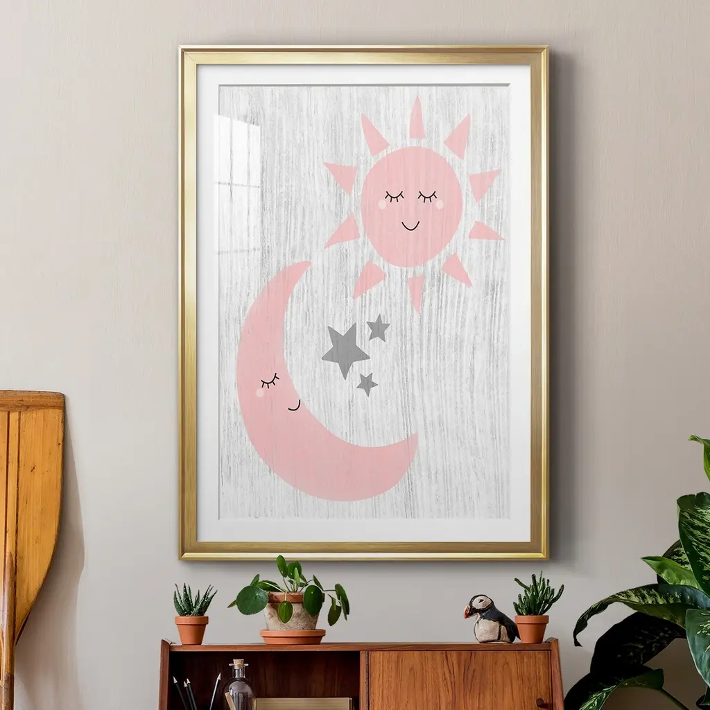 Sun and Moon Premium Framed Print - Ready to Hang A Premium Framed Print created to last. Framed in distressed wood and available in an array of sizes and colors Featuring a beveled a solid wood stretcher bar, each piece comes ready to hand 4 SIZES AVAILABLE 30.5''X42.5'' - Overall Size 26.5'X36.5'' - Overall Size 22.5''x30.5'' - Overall Size 18.5''x24.5'' - Overall Size Each piece is made to order. Each piece comes with hanging hardware. Made in the USA Ready to Hang Giclee Paper Print Acrylic Glass Beveled Matt Board