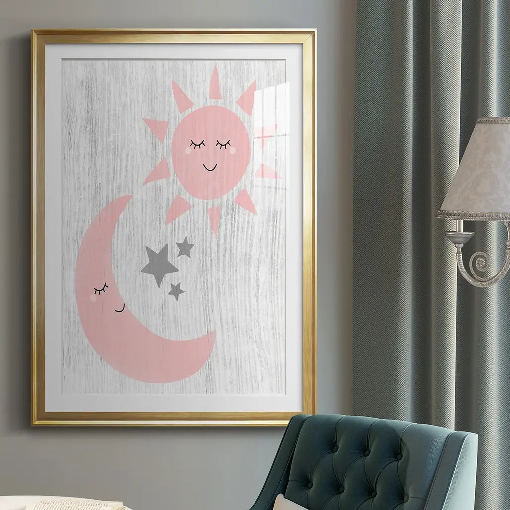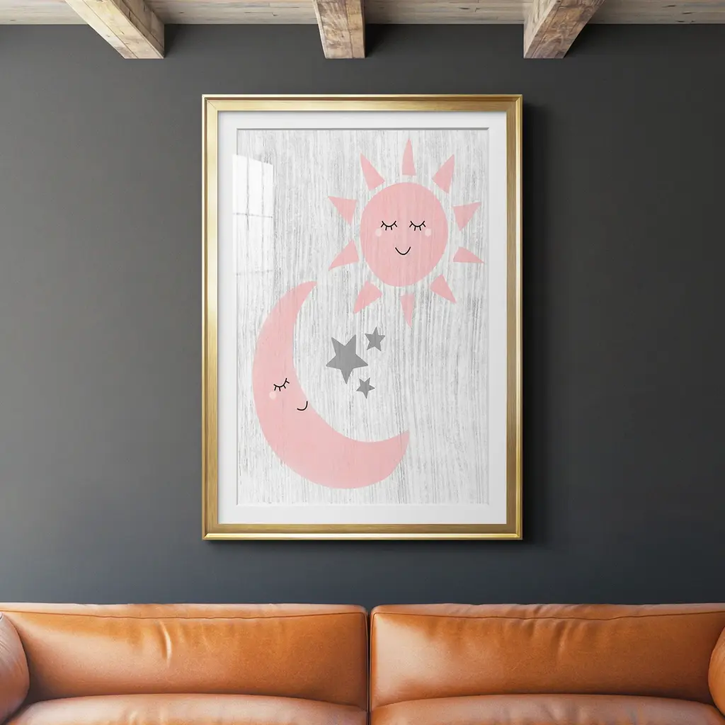 Sun and Moon Premium Framed Print - Ready to Hang A Premium Framed Print created to last. Framed in distressed wood and available in an array of sizes and colors Featuring a beveled a solid wood stretcher bar, each piece comes ready to hand 4 SIZES AVAILABLE 30.5''X42.5'' - Overall Size 26.5'X36.5'' - Overall Size 22.5''x30.5'' - Overall Size 18.5''x24.5'' - Overall Size Each piece is made to order. Each piece comes with hanging hardware. Made in the USA Ready to Hang Giclee Paper Print Acrylic Glass Beveled Matt Board