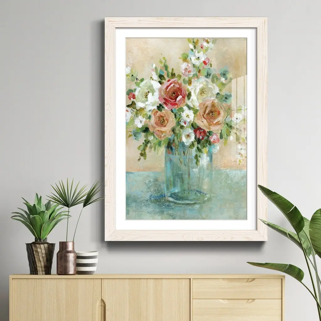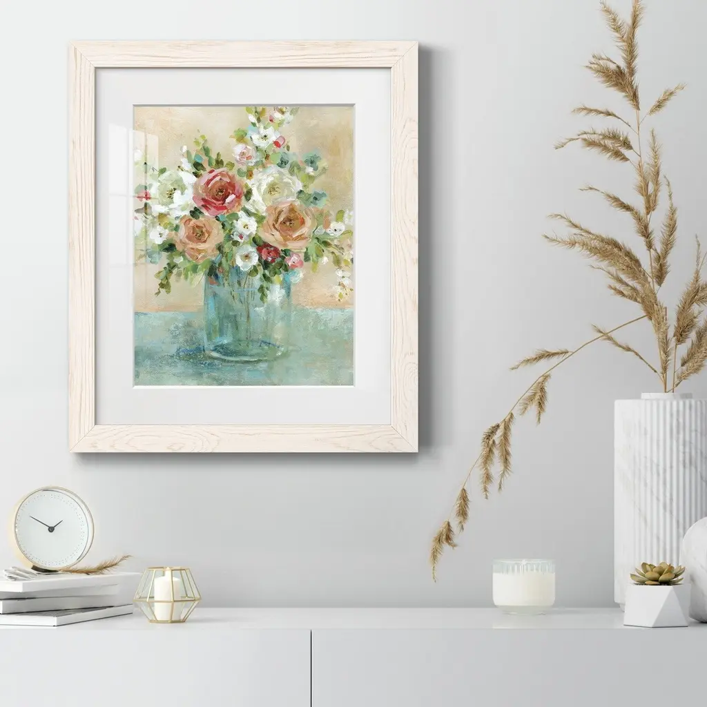 Sun Drenched Arrangements-Premium Framed Print - Ready to Hang Framed in distressed wood and available in an array of sizes and colors Each piece is joined and assembled by hand and comes ready to hang 2 INCH BEVELED MATTE BOARD PLEXIGLASS COVERING READY TO HANG MADE IN THE USA SOLID WOOD FRAME MADE IN USA FADE RESISTANT GICLEE PRINTING on Canvas or Paper
