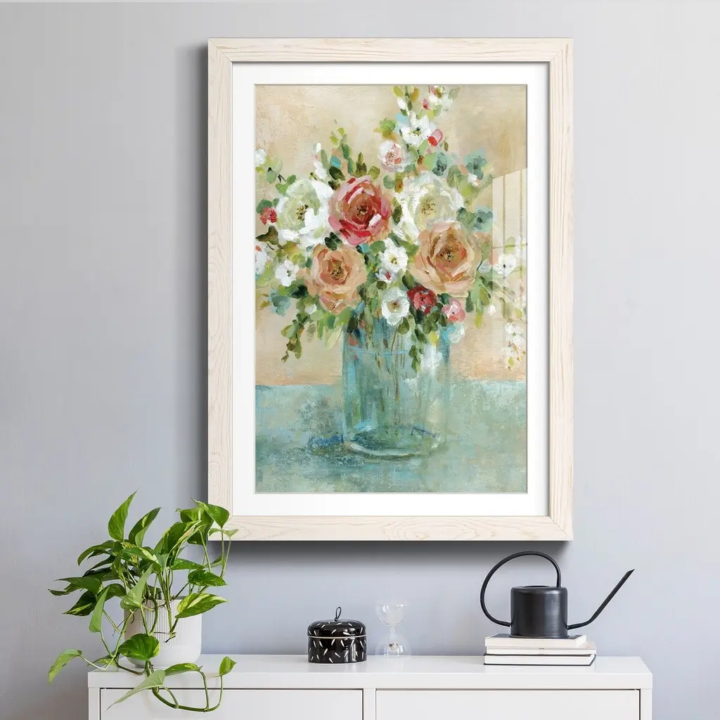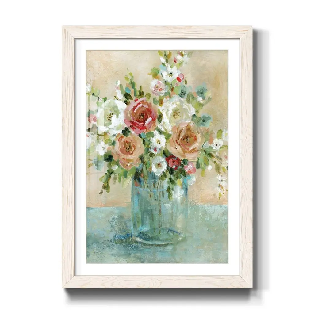 Sun Drenched Arrangements-Premium Framed Print - Ready to Hang Framed in distressed wood and available in an array of sizes and colors Each piece is joined and assembled by hand and comes ready to hang 2 INCH BEVELED MATTE BOARD PLEXIGLASS COVERING READY TO HANG MADE IN THE USA SOLID WOOD FRAME MADE IN USA FADE RESISTANT GICLEE PRINTING on Canvas or Paper