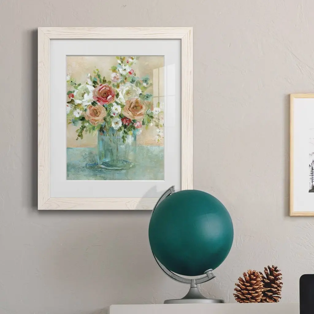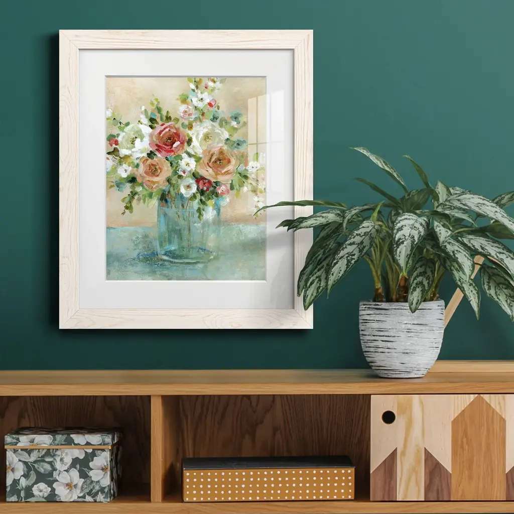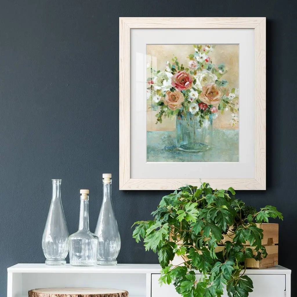 Sun Drenched Arrangements-Premium Framed Print - Ready to Hang Framed in distressed wood and available in an array of sizes and colors Each piece is joined and assembled by hand and comes ready to hang 2 INCH BEVELED MATTE BOARD PLEXIGLASS COVERING READY TO HANG MADE IN THE USA SOLID WOOD FRAME MADE IN USA FADE RESISTANT GICLEE PRINTING on Canvas or Paper
