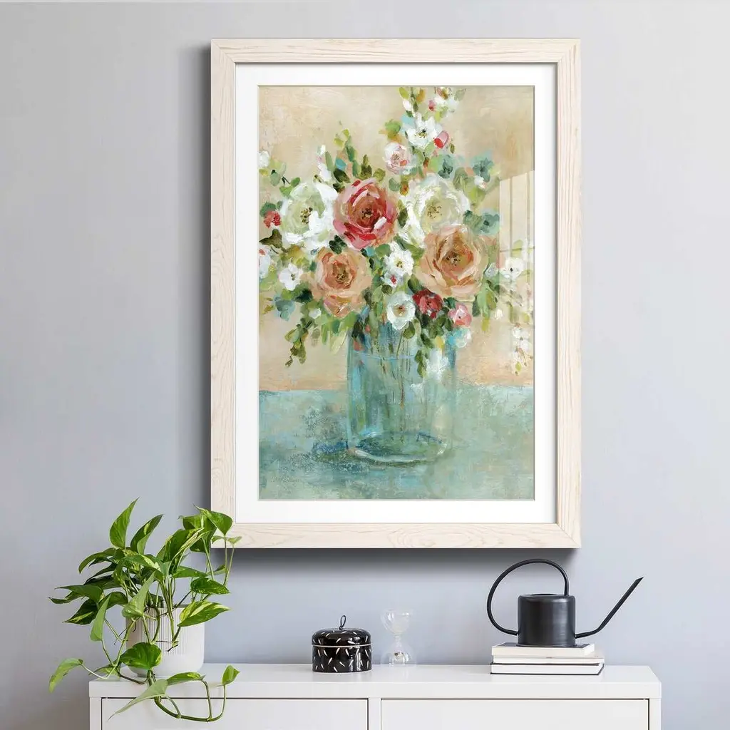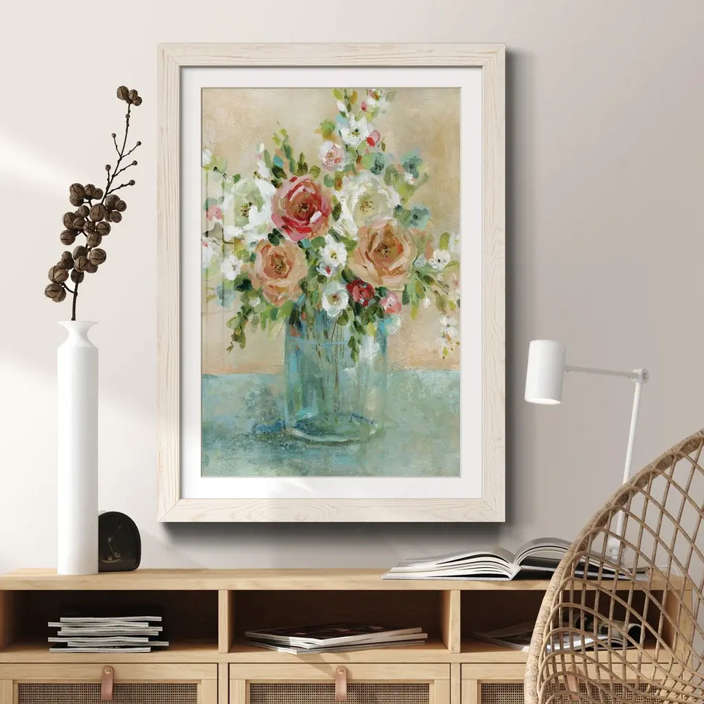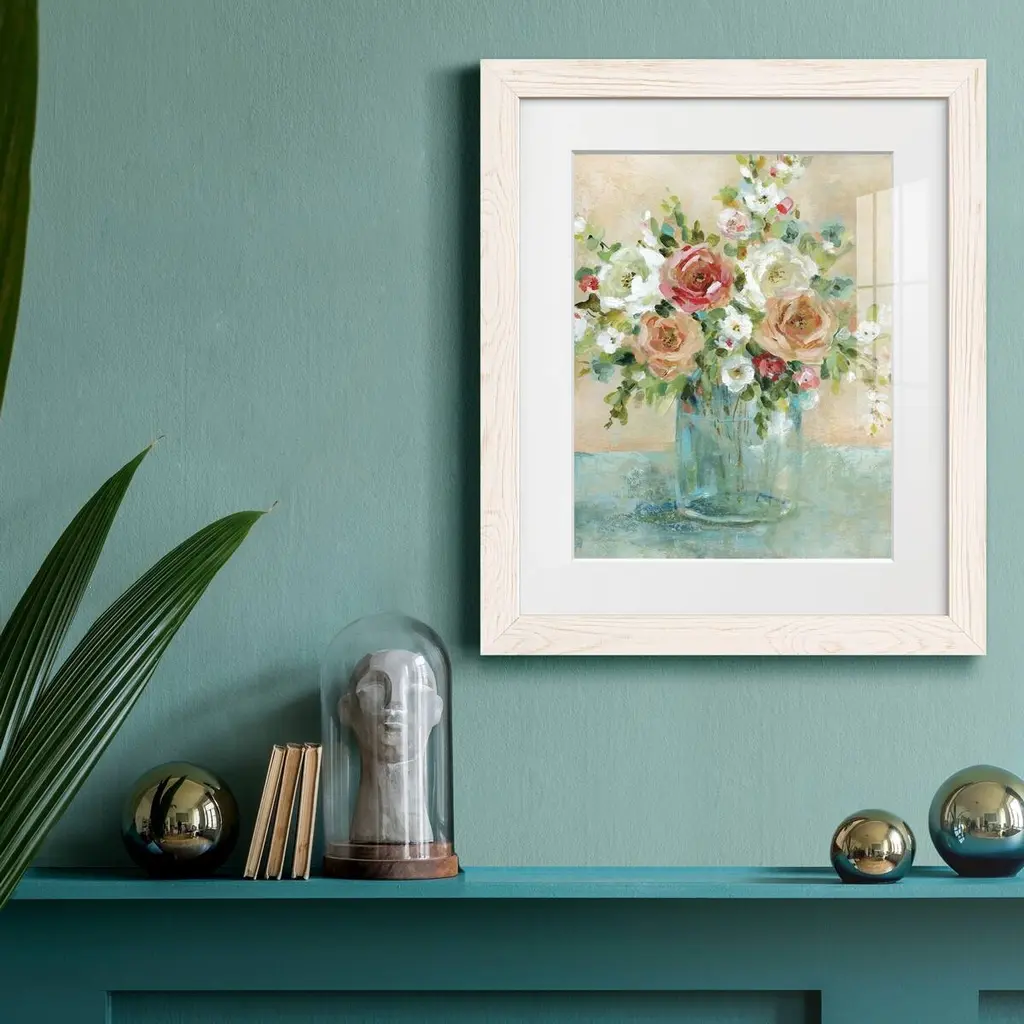 Sun Drenched Arrangements-Premium Framed Print - Ready to Hang Framed in distressed wood and available in an array of sizes and colors Each piece is joined and assembled by hand and comes ready to hang 2 INCH BEVELED MATTE BOARD PLEXIGLASS COVERING READY TO HANG MADE IN THE USA SOLID WOOD FRAME MADE IN USA FADE RESISTANT GICLEE PRINTING on Canvas or Paper