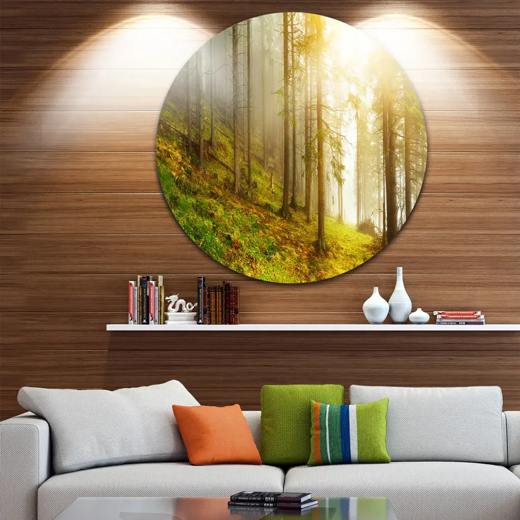 Sun Finds Its Way In Forest, Landscape Photo Disc Metal Wall Art, 11"