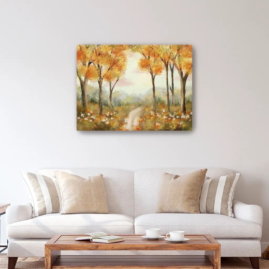 Bring the beauty of autumn indoors with this landscape fall canvas art print that captures the season’s serene charm. The rich hues and tranquil scenery evoke cozy walks through nature, making it a captivating focal point for seasonal décor. Perfect for lovers of fall landscapes and rustic wall art inspiration. Our Gallery Wrap Canvas Prints are proudly assembled with high quality materials in California, USA. Each piece is printed on a thick, archival grade canvas using Giclee technology. It is then hand-stretched by our experienced artisans over solid wood bars, which will not warp over time. The final product is a piece personally crafted for you to confidently display on your wall. Care and Assembly: Ensure that the location of your piece has little to no exposure to heat, sunlight, and moisture. Wipe clean, only if needed. Each piece includes a sawtooth hanger to hang on your wall horizontally.