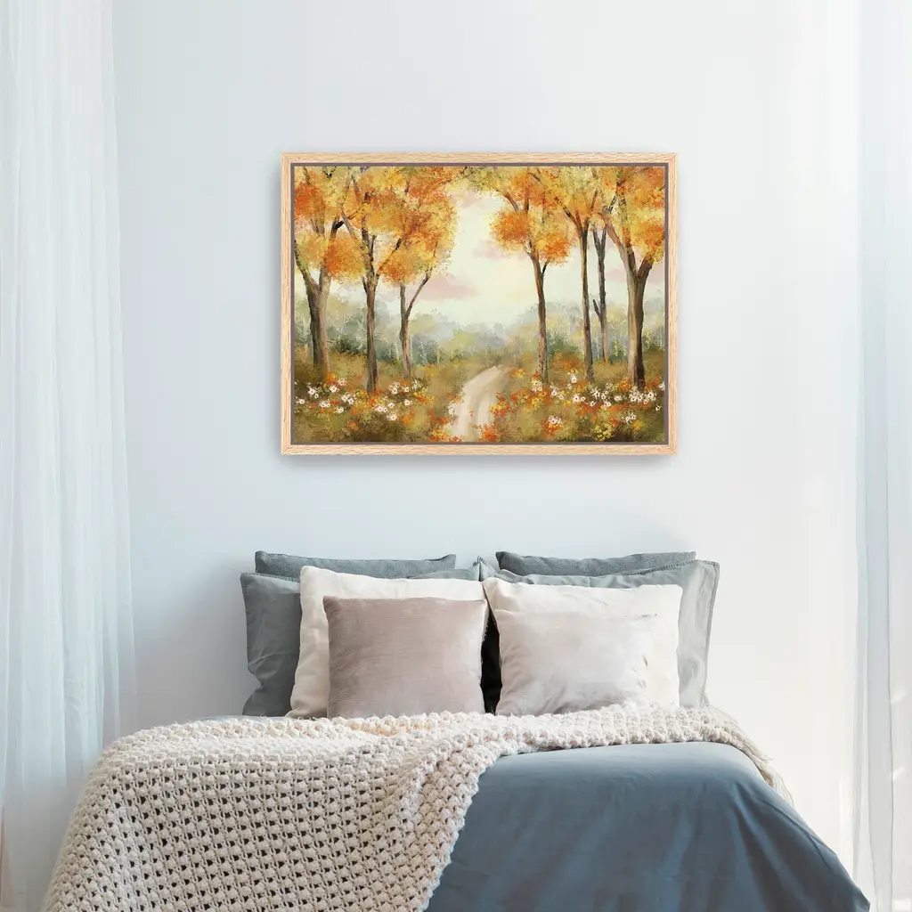 Bring the beauty of autumn indoors with this landscape fall canvas art print that captures the season’s serene charm. The rich hues and tranquil scenery evoke cozy walks through nature, making it a captivating focal point for seasonal décor. Perfect for lovers of fall landscapes and rustic wall art inspiration. Our Gallery Wrap Canvas Prints are proudly assembled with high quality materials in California, USA. Each piece is printed on a thick, archival grade canvas using Giclee technology. It is then hand-stretched by our experienced artisans over solid wood bars, which will not warp over time. The final product is a piece personally crafted for you to confidently display on your wall. Care and Assembly: Ensure that the location of your piece has little to no exposure to heat, sunlight, and moisture. Wipe clean, only if needed. Each piece includes a sawtooth hanger to hang on your wall horizontally.