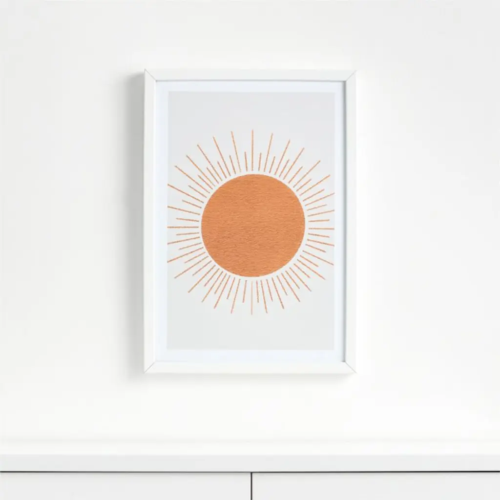 Bring classic cool into the kids room with this mid-century inspired print. A golden sun surrounded by rays creates a timeless, minimalist vibe that's perfect for chic nurseries or kids spaces with elevated decor. A stylish addition to any gallery wall, the Sun Ray Mid-Century Wall Art is easy to coordinate, mix and match.