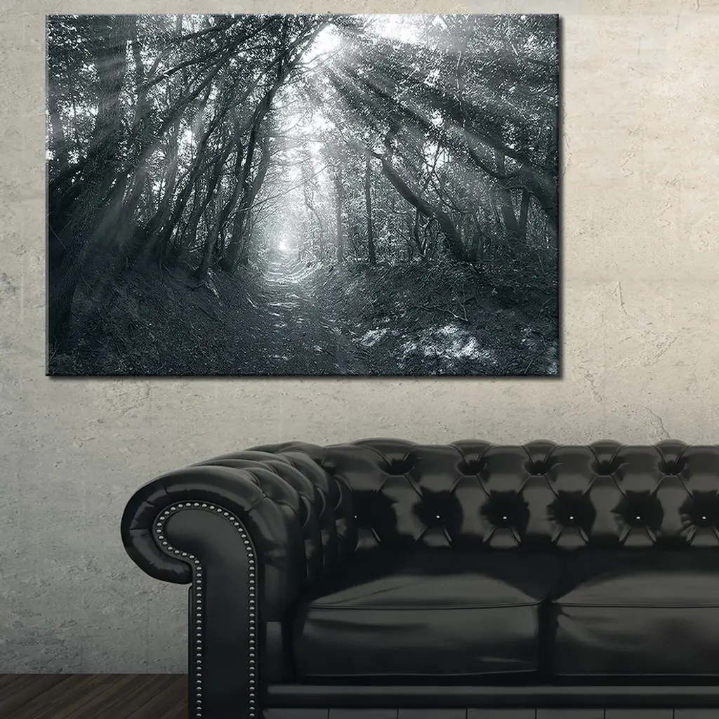 The Sun Rays Through Gray Trees canvas art print is sure to make an impression on anyone who sees it. This artwork is gallery wrapped around a 1-inch solid wood frame and arrives carefully packaged and entirely ready to hang on the wall. Design Art only uses the highest resolution and pigments to ensure a crisp colorful print that is never faded or pixelated. This artwork is sure to be a conversation starter in any home or office.