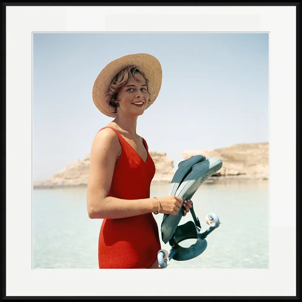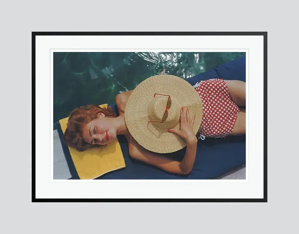 Sunbathing in Burgenstock 1955 Lilian Hanson, sunbathing by a pool at the Burgenstock Resort in Canton Nidwalden, Switzerland, 1955. Photo by Slim Aarons Slim Aarons was one of the twentieth century’s most prolific documenters of celebrity and socialite life. Over six decades, Aarons photographed some of the world’s most beautiful people in some of the globes most desirable destinations: jet-setting from Beverly Hills to Capri to the French Riviera, Aarons snapped the likes of the Kennedy family, Humphrey Bogart, Marilyn Monroe, and Grace Kelly. Paper size - 12 x 16" / 30 x 40 cm Approx frame size - 19 x 23 " / 48 x 58 cm Stamped and issued by the Getty Images Archive London England (sole owners of the Slim Aarons Collection) made utilising the original transparency c print Framed in black solid wood frame with mount and glazing - ready to hang Ships securely from London Printed later