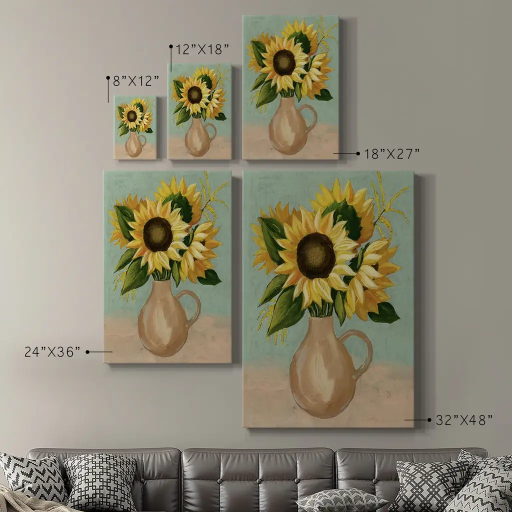 Sunflower Afternoon I Premium Gallery Wrapped Canvas - Ready to Hang A premium hand stretched gallery wrapped canvas print created to last. Featuring a beveled a solid wood stretcher bar, each piece comes ready to hand 6 SIZES AVAILABLE 8''X12'' - Overall Size 12''X18'' - Overall Size 18''X27'' - Overall Size 24''x36'' - Overall Size 32''x48'' - Overall Size 40''x60'' - Overall Size Each piece is made to order. Built to Last Each piece comes ready to hang Solid wood stretcher Fade and Water resistant Made domestically