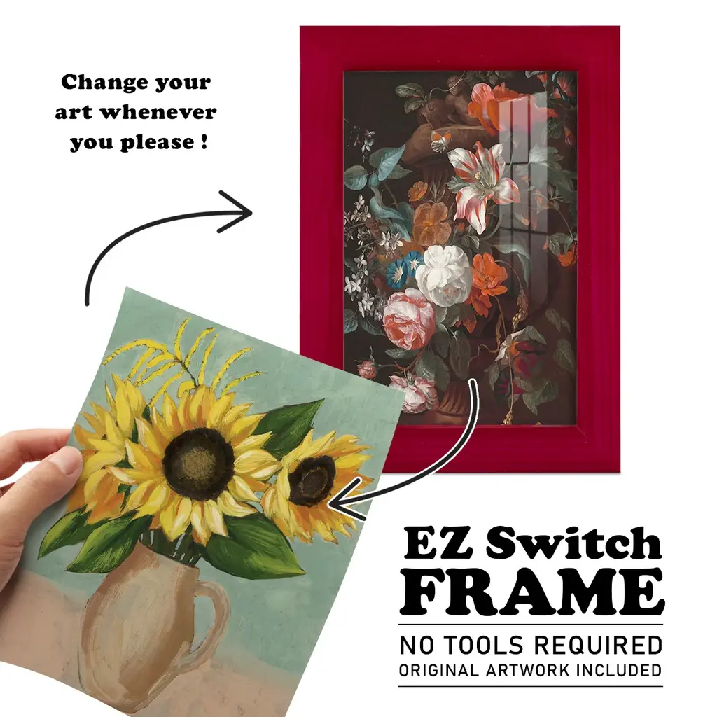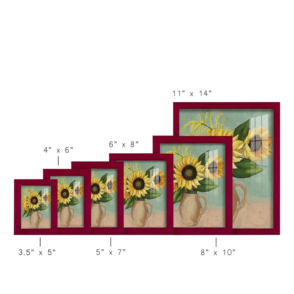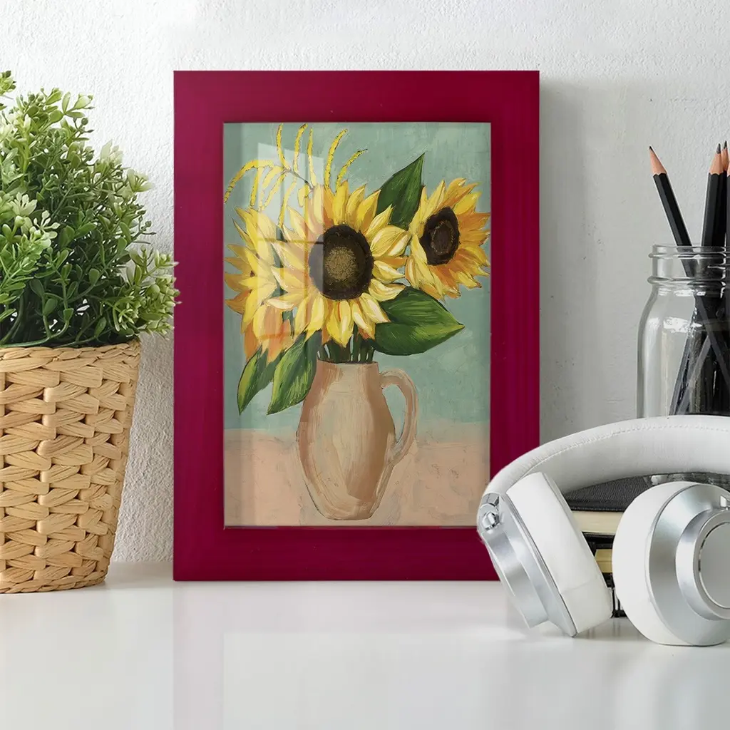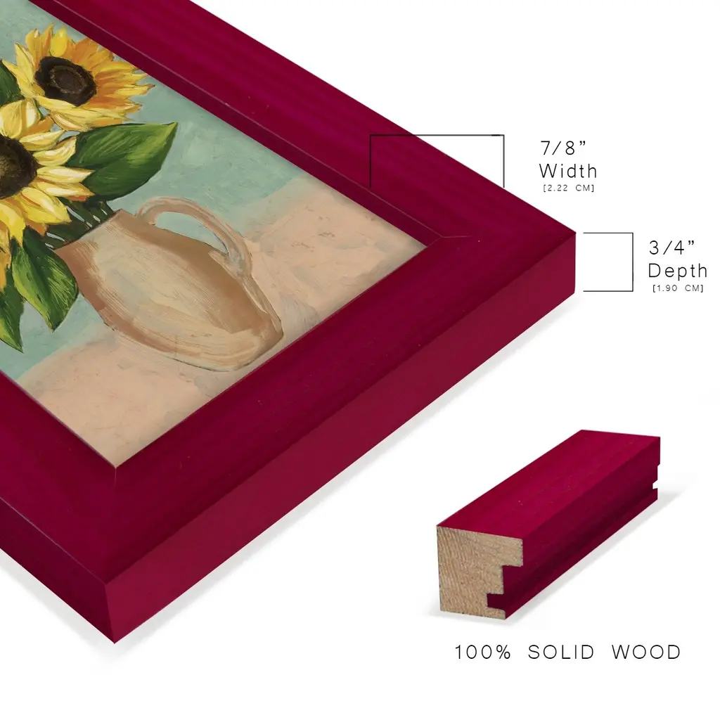 Sunflower Afternoon II -EZ SWITCH Framed Print w/glass-Cherry Red A delightful, framed print. Featuring a solid wood frame with real wood glass. This premium print is giclee quality. In addition, every frame features a removable back and table top stand. This allows you to change your art in the future or to just stand the art on a table for a new look. We are sure you'll enjoy our new series of EZ SWITCH Framed Art. Solid Wood Frame Real Glass Removable / Replaceable Art Built in Tabletop Stand Sizes range from 4x6 up to 12x15 - buy just one or pair them up as sets as you see fit.