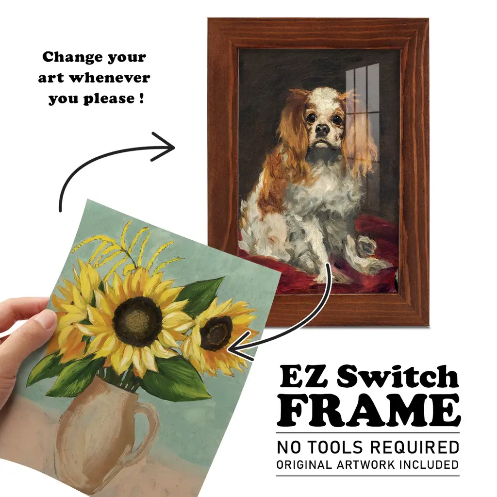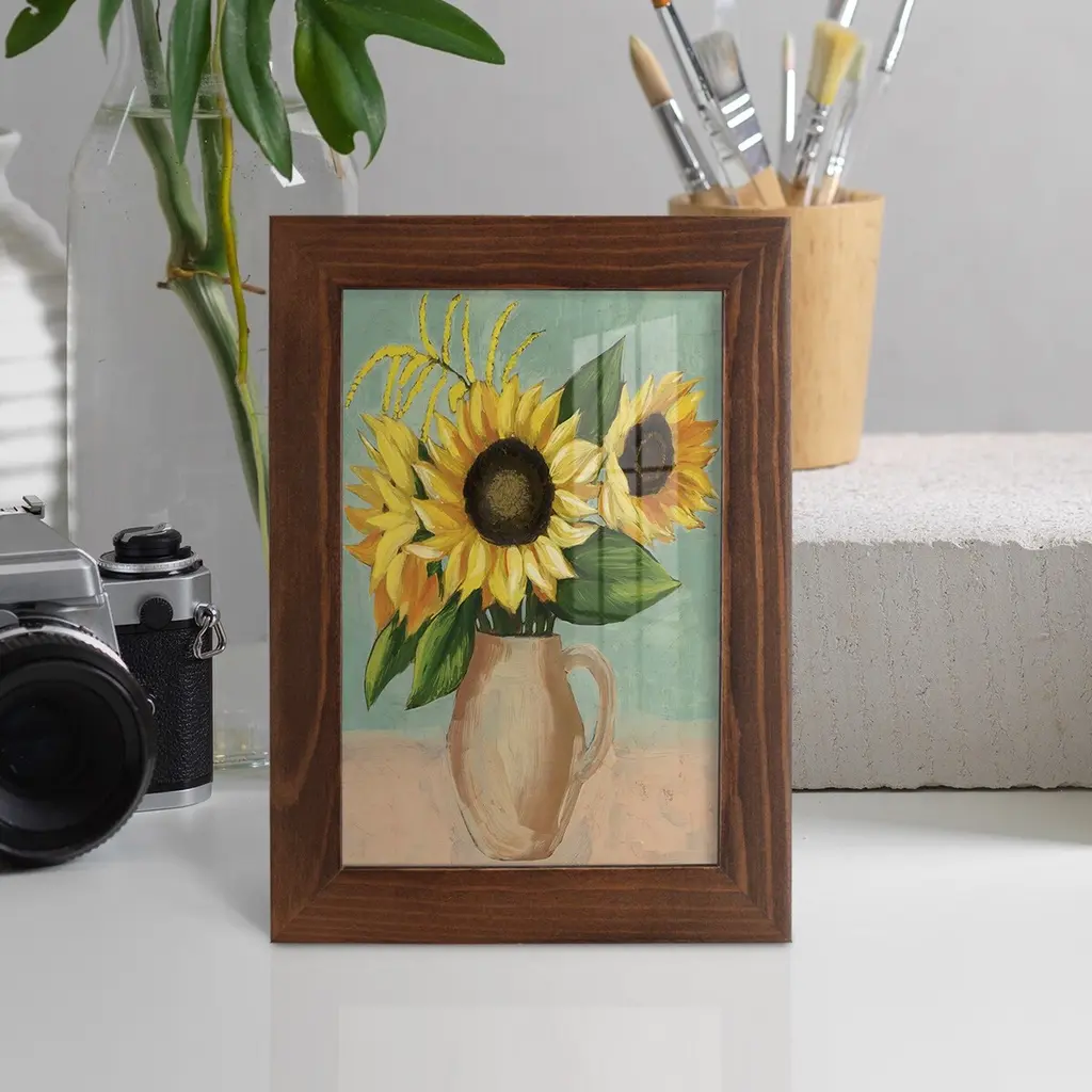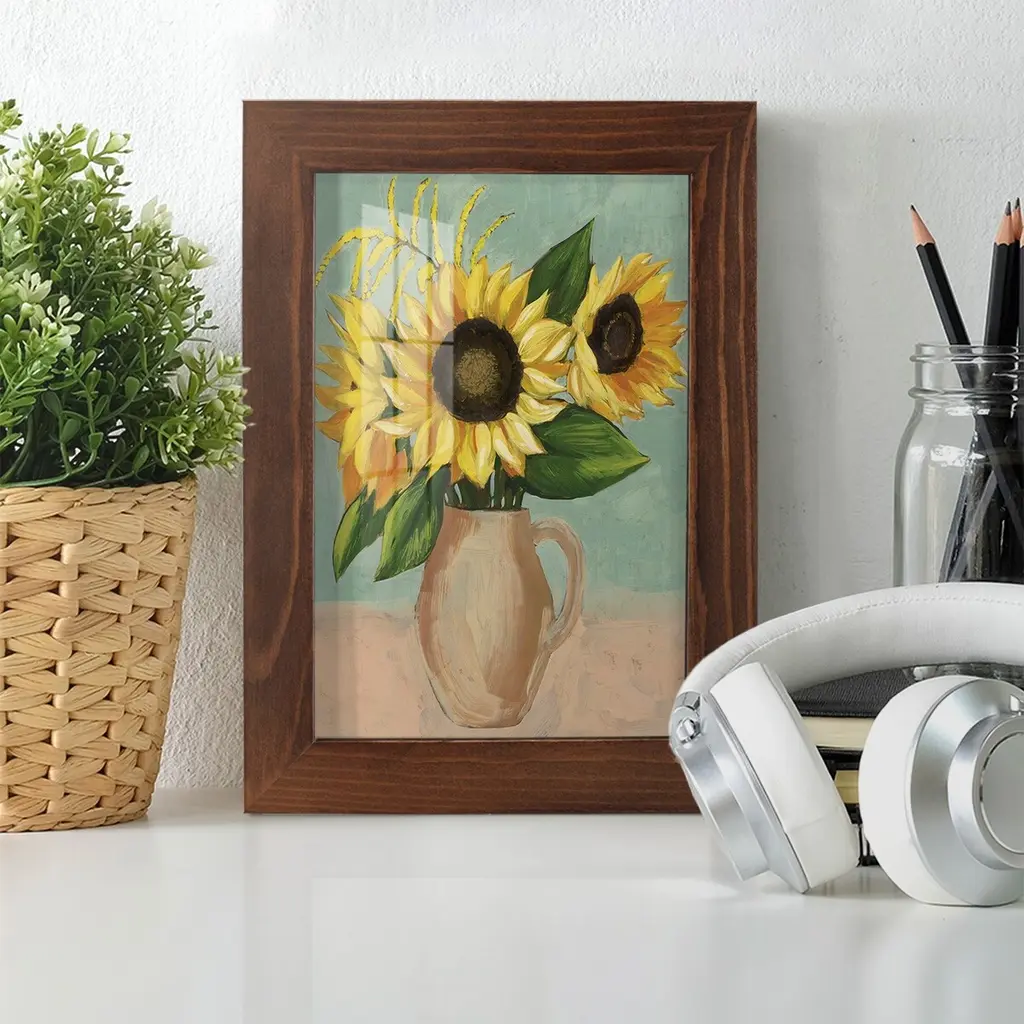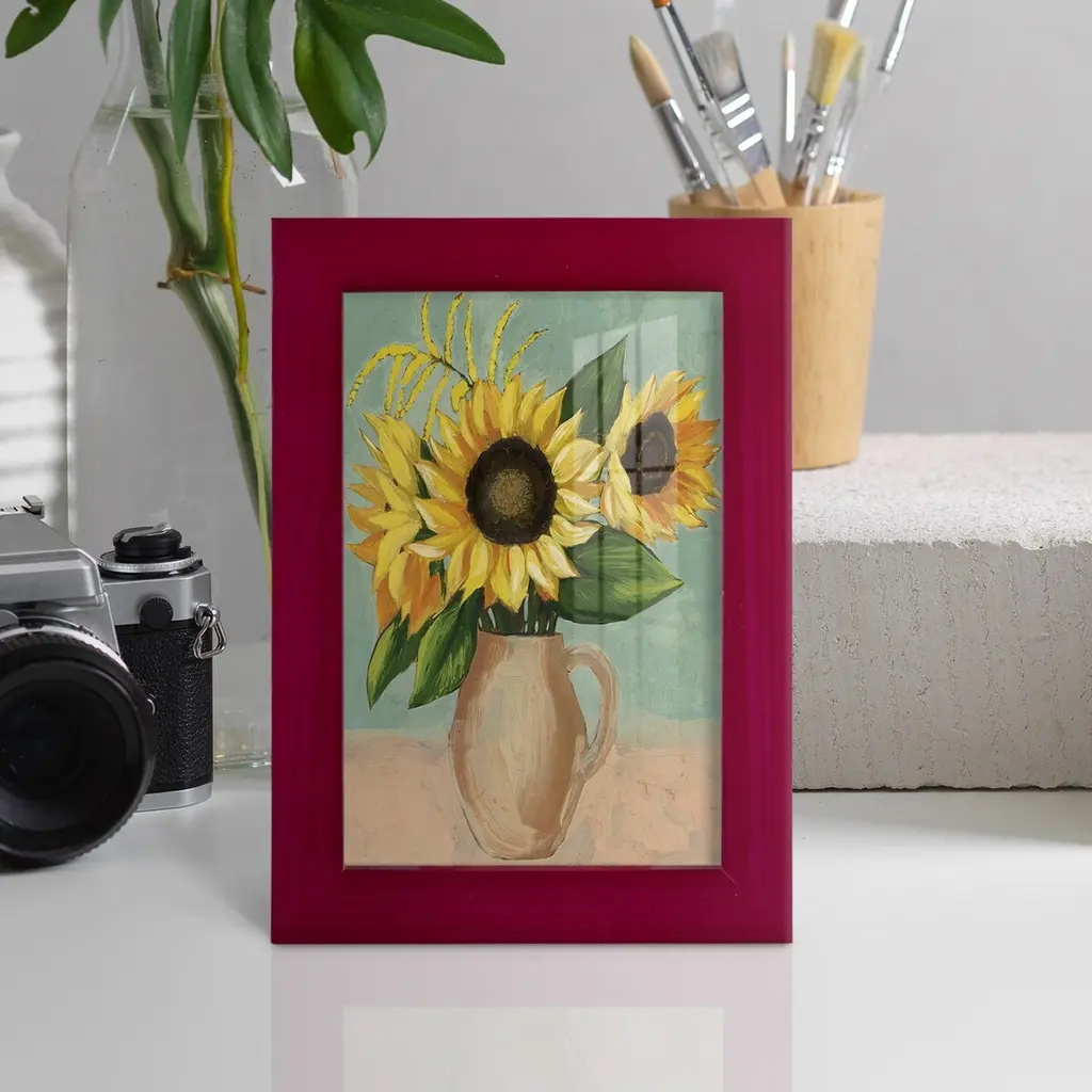 Sunflower Afternoon II -EZ SWITCH Framed Print w/glass-Cherry Red A delightful, framed print. Featuring a solid wood frame with real wood glass. This premium print is giclee quality. In addition, every frame features a removable back and table top stand. This allows you to change your art in the future or to just stand the art on a table for a new look. We are sure you'll enjoy our new series of EZ SWITCH Framed Art. Solid Wood Frame Real Glass Removable / Replaceable Art Built in Tabletop Stand Sizes range from 4x6 up to 12x15 - buy just one or pair them up as sets as you see fit.