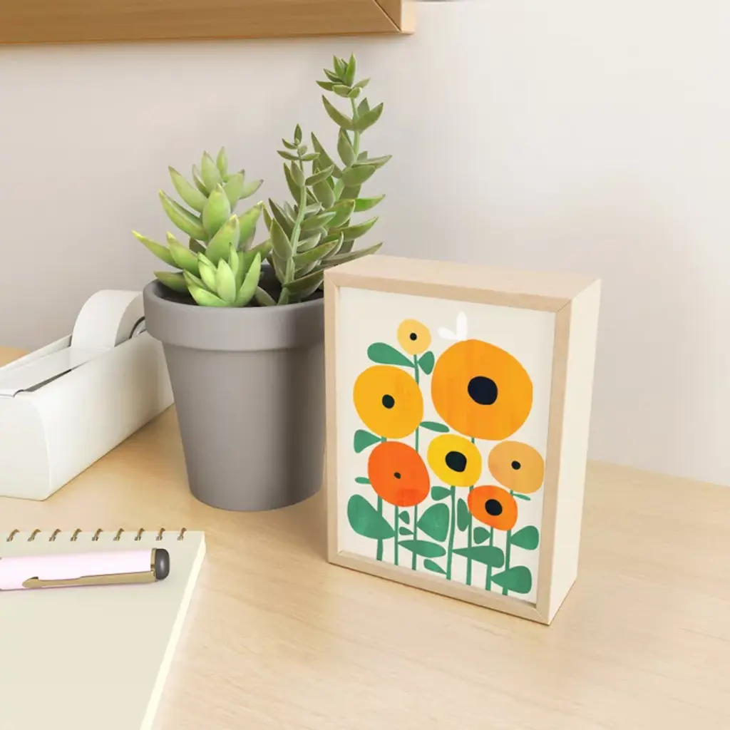 Mini Art Prints:High Quality Art PaperMatte finish for rich, saturated colors.Gallery-quality ink for long-lasting vibrancy.Significantly thicker than standard posters.Made in the USA.Framed Mini Art Prints:All frames include a premium, lightweight, shatterproof acrylic cover, and hanging hardware.Wood frames available in four different hardwood colors (black, white, light maple, and dark walnut) with a smooth grain pattern finish.Made in the USA.Mini Art Prints and Framed Mini Art Prints come in one of two sizes depending on the artwork; 3" wide by 4" tall or 4" wide by 4" tall. Check selected size for exact measurements.Optional poplar wood stand dimensions are 2.5" x 1.25" x .75" for the Mini Art Print.We're committed to creating beautiful art while respecting our planet:Eco-friendly, acid-free paper.Packaging made from recycled materials.Locally produced in the USA to reduce transportation emissions.SHIPPING: Items are made to order and typically ship within 3-4 business days. Click here for more information about delivery options.RETURNS: Return requests can be made within 30 days of your item(s) delivery. Click here for more information on returns.
