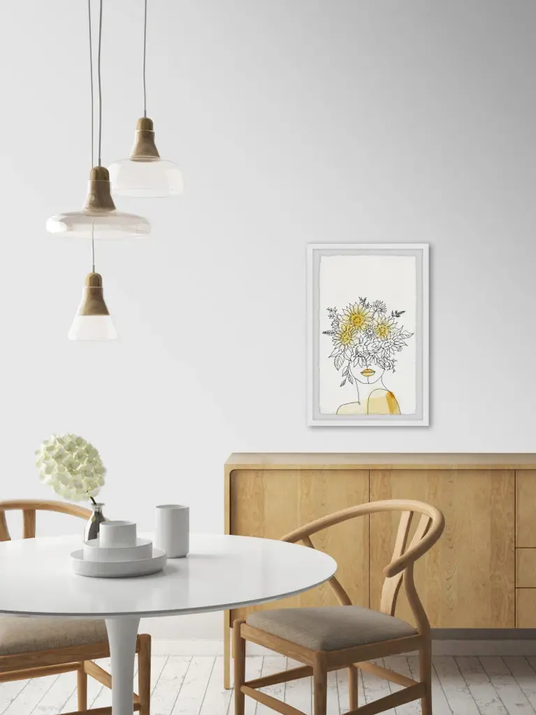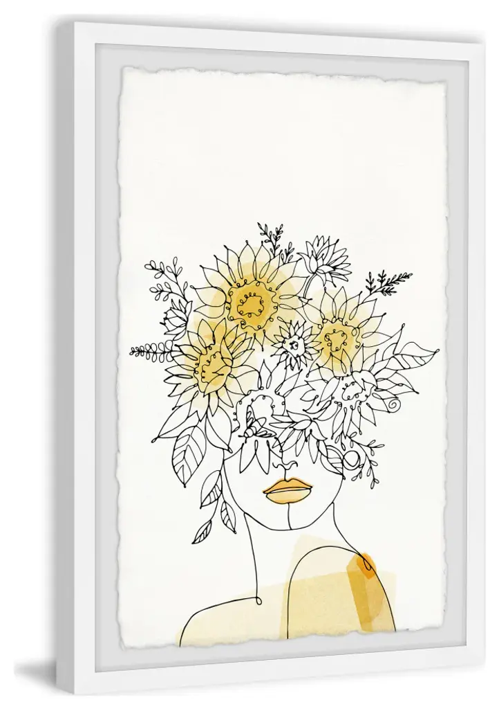 Bring a glimmer of sunshine into your home with this uplifting drawing print that features a woman- s face with yellow flowers. Proudly printed in the USA, this piece is printed on high quality archive paper and professionally hand-framed. With wall-mounting hooks included, this artful accent is ready to hang up as soon as it reaches your front door.- Top quality Giclee print on high resolution Archive Paper- Hand cut deckled edges- High quality durable non-warping frame- Finished under shatter resistant plexiglass- Arrives ready to hang- Includes a certificate of authenticity- Printed in the USA