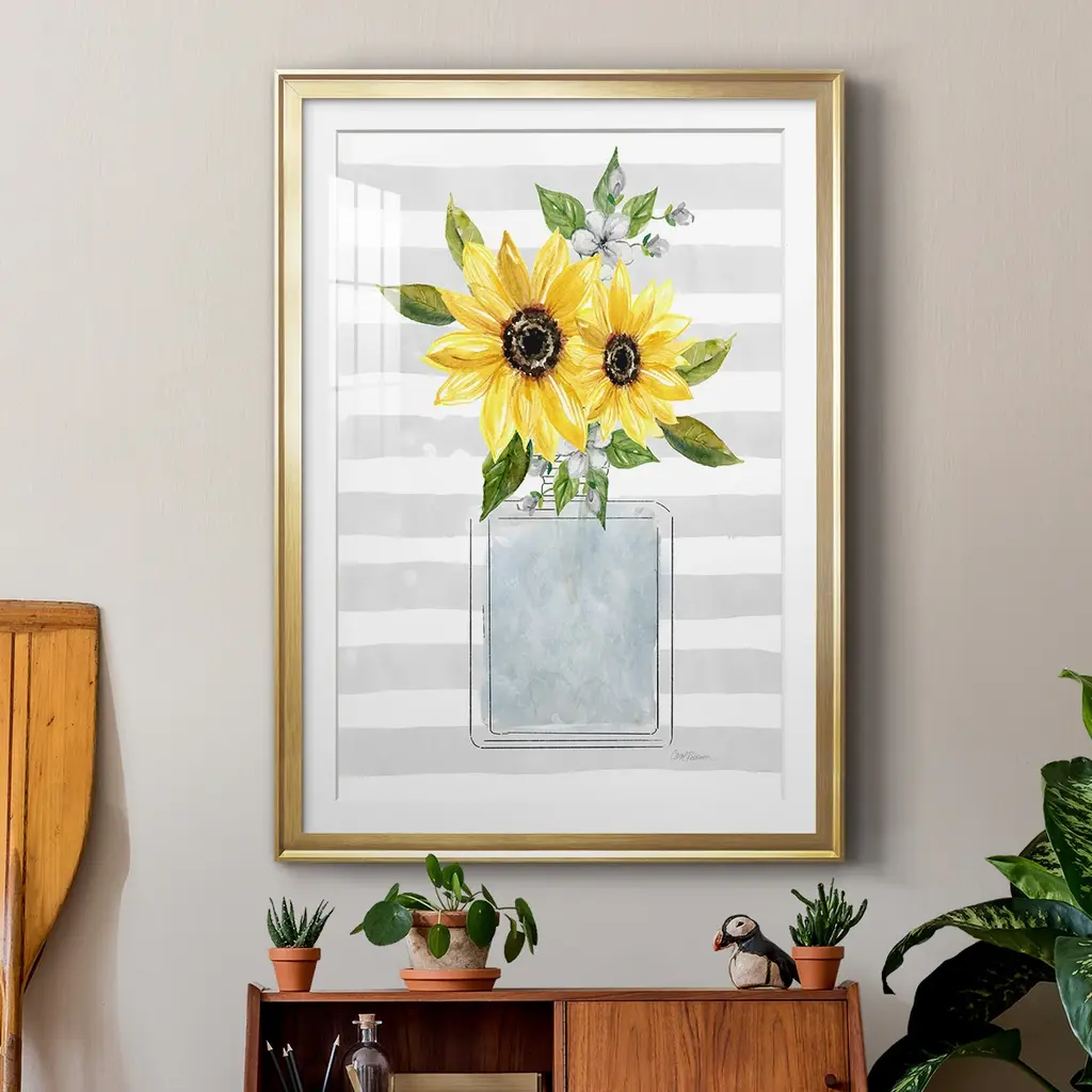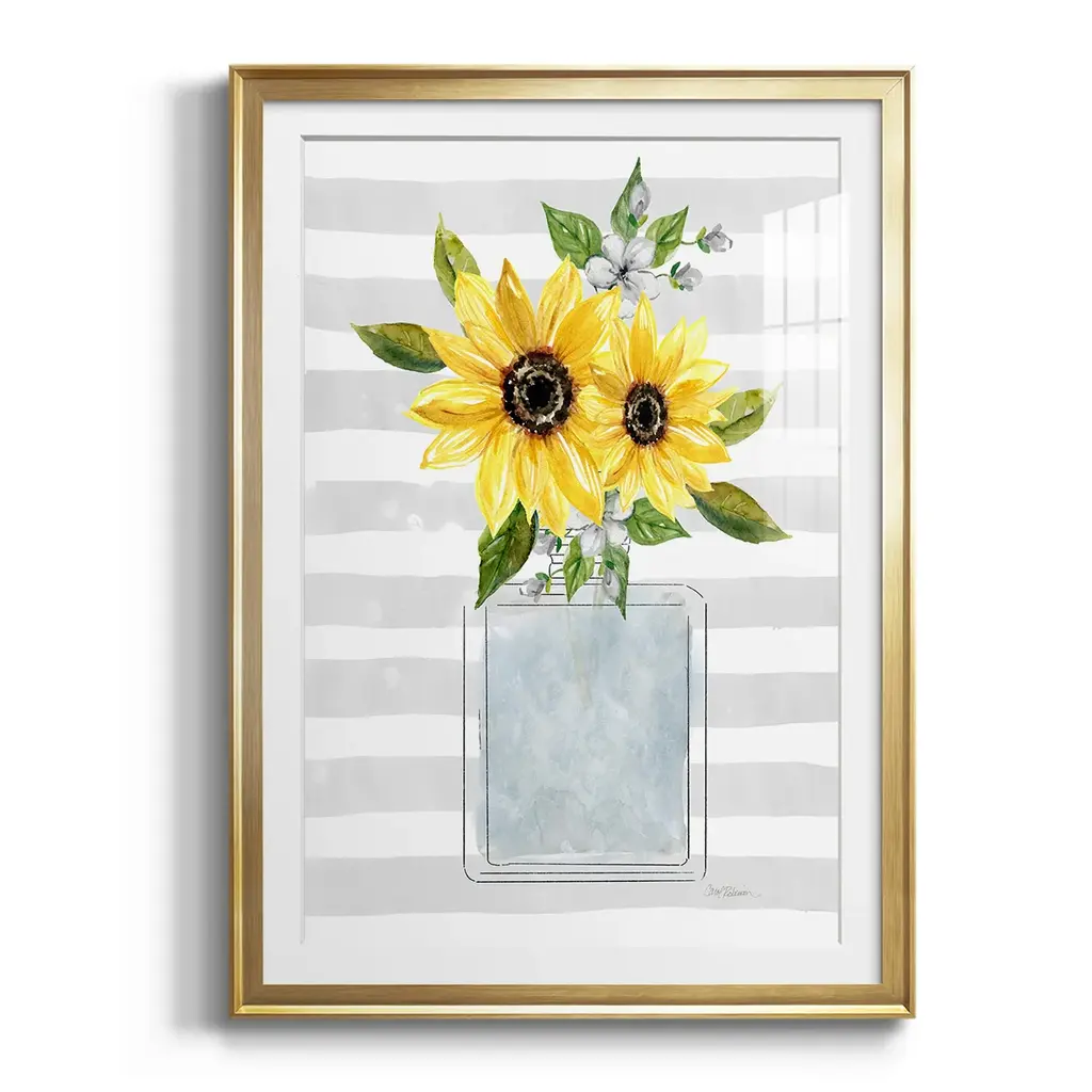 Sunflower Perfume I Premium Framed Print - Ready to Hang A Premium Framed Print created to last. Framed in distressed wood and available in an array of sizes and colors Featuring a beveled a solid wood stretcher bar, each piece comes ready to hand 4 SIZES AVAILABLE 30.5''X42.5'' - Overall Size 26.5'X36.5'' - Overall Size 22.5''x30.5'' - Overall Size 18.5''x24.5'' - Overall Size Each piece is made to order. Each piece comes with hanging hardware. Made in the USA Ready to Hang Giclee Paper Print Acrylic Glass Beveled Matt Board