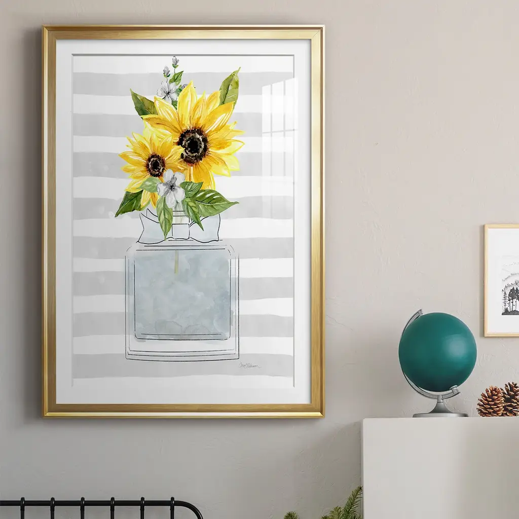 Sunflower Perfume II Premium Framed Print - Ready to Hang A Premium Framed Print created to last. Framed in distressed wood and available in an array of sizes and colors Featuring a beveled a solid wood stretcher bar, each piece comes ready to hand 4 SIZES AVAILABLE 30.5''X42.5'' - Overall Size 26.5'X36.5'' - Overall Size 22.5''x30.5'' - Overall Size 18.5''x24.5'' - Overall Size Each piece is made to order. Each piece comes with hanging hardware. Made in the USA Ready to Hang Giclee Paper Print Acrylic Glass Beveled Matt Board
