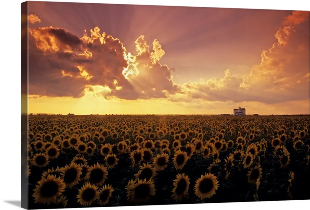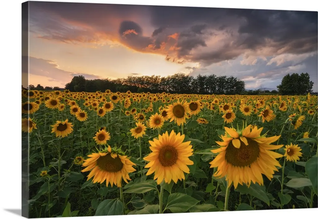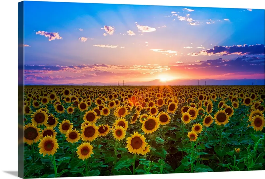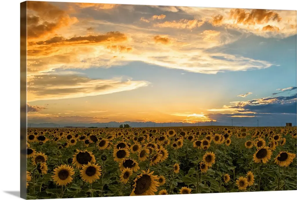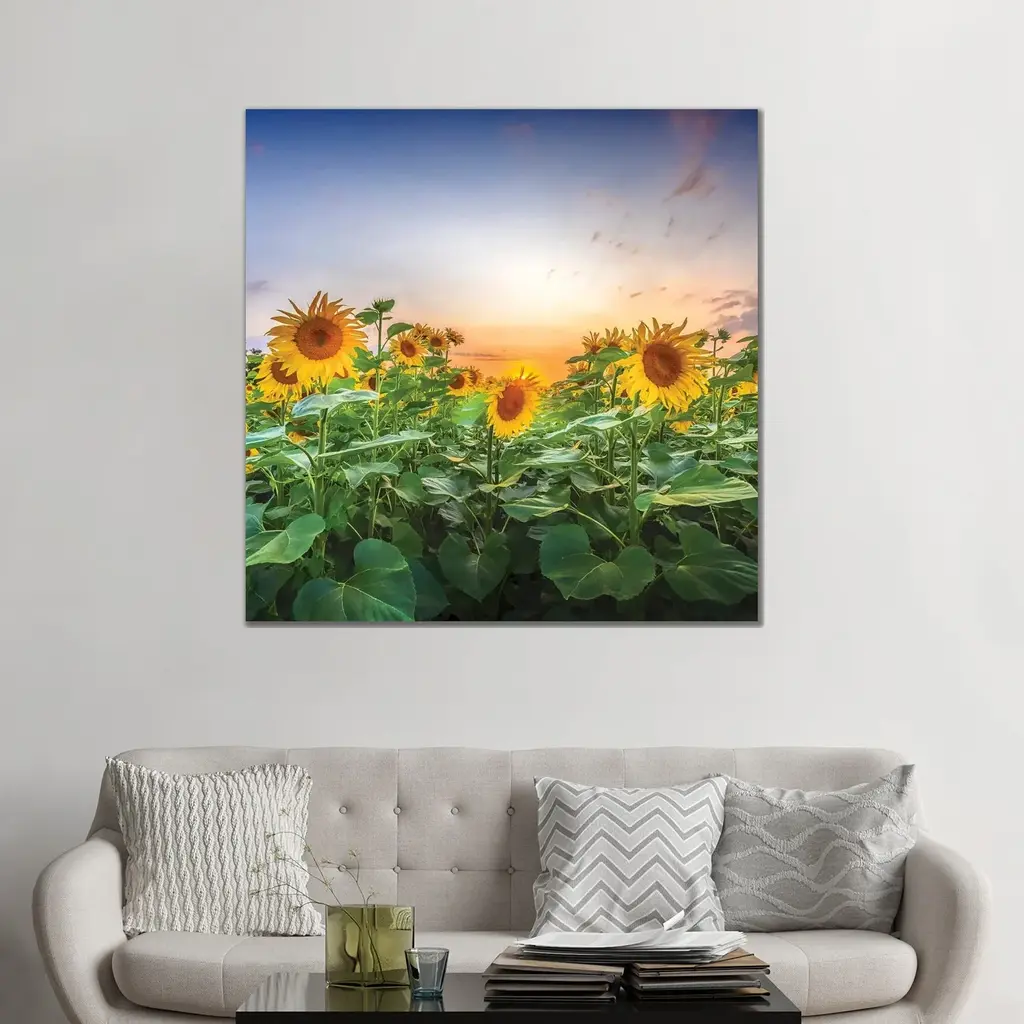 Bring Contemporary Abstraction to your home with this large Circle Metal wall art. This Sunflower Sunset with Cloudy Sky Metal Artwork makes it the focal point of any room or office. - White Gloss Coating ensures colors are extra vibrant with light reflection.- Aluminum grade Sheet Metal with 1 inch mounting frame on the back giving the illusion that the artwork is floating on the wall..- Mounting Brackets are included along with instructions.- High Quality Digital images are created directly into a glossy aluminum panel producing a stunning and captivating print into the glossy finish of the metal.- Water, Fire and Scratch resistant HD Aluminum panels.- Looks better than any photo paper and guaranteed to last at least 20 years- Easy to clean with a microfiber cloth. Colors are far superior to regular Canvas Art. - Easy to Hang