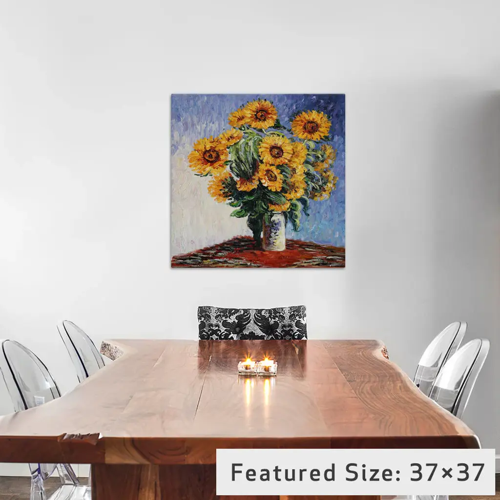 "Sunflowers" By Claude Monet, 26x26x1.5"